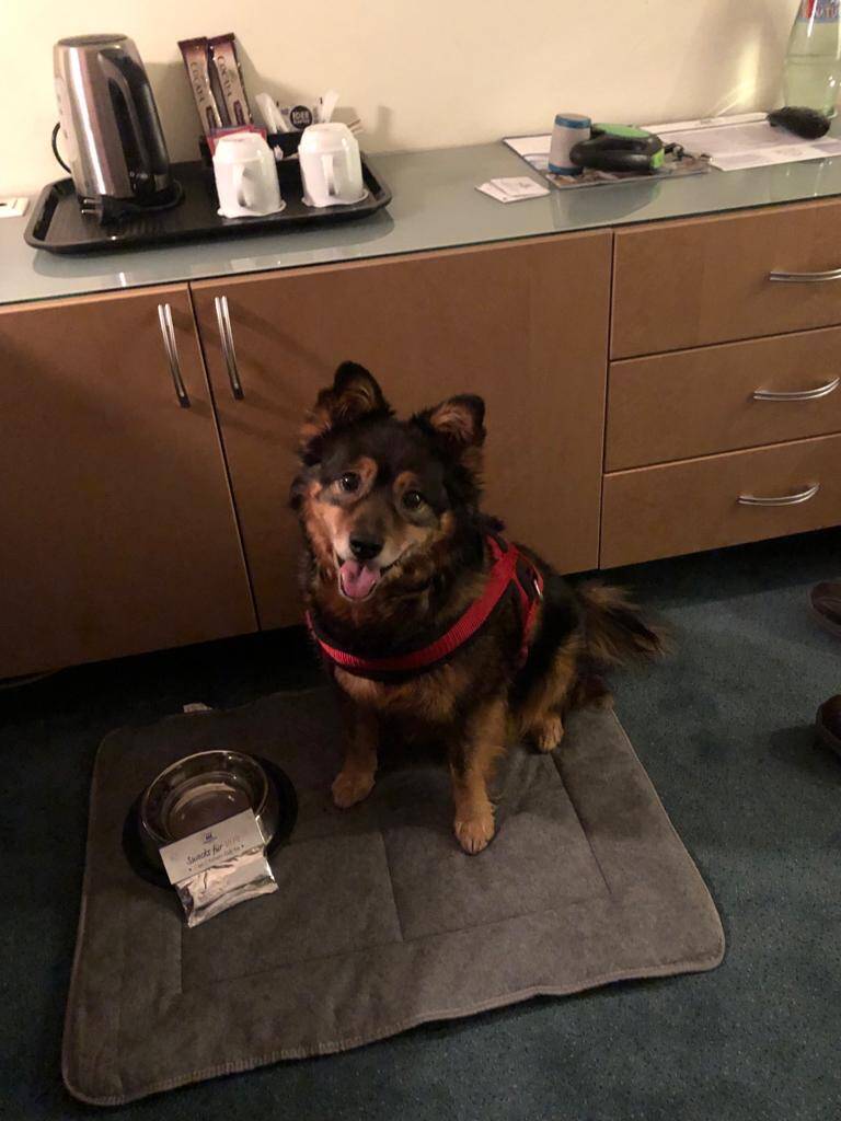 Ein sehr schönes Hotel in dem ich sehr freundlich begrüßt werde. Auf dem Zimmer steht sogar ein Napf mit Leckerlies für mich bereit, was ich sehr aufmerksam finde.