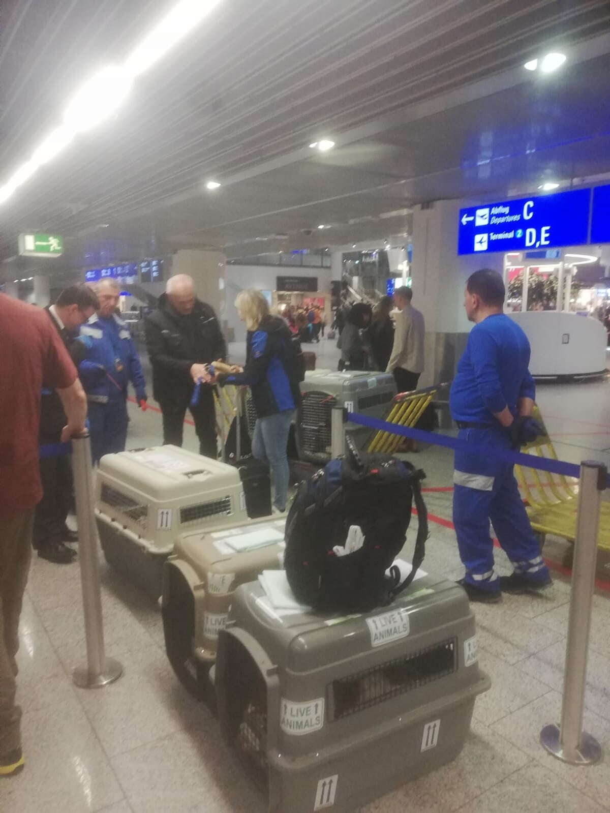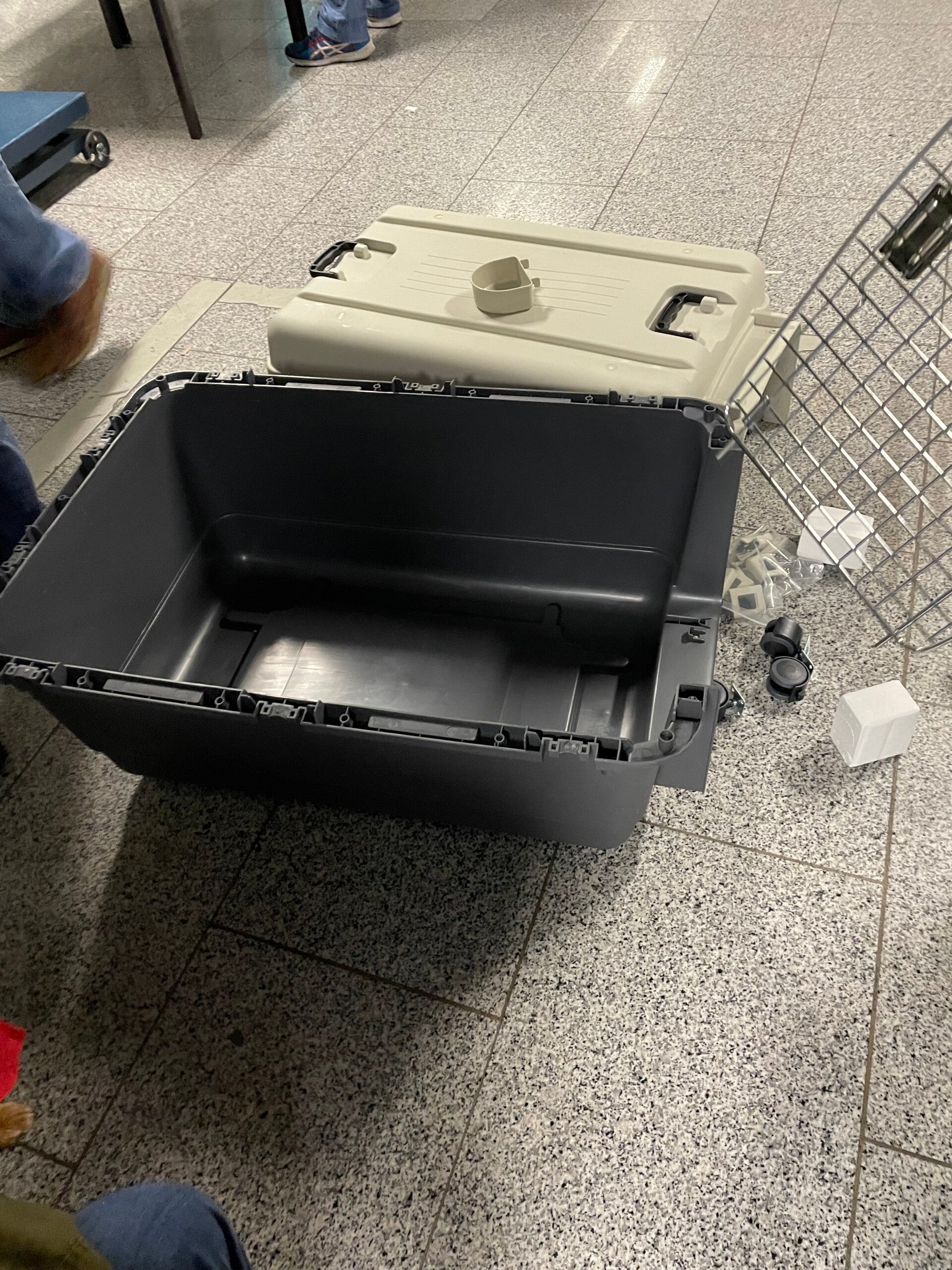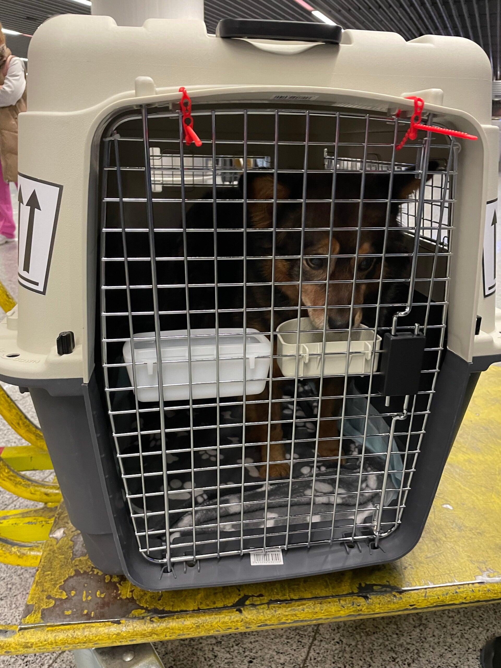 Flughafen Frankfurt: Meine Transportbox hat keine Stahlschrauben! So kann ich nicht mit! Das ist der erste Schreck an diesem Morgen. Ich merke schon wie mein Lieblingsmensch zu schwitzen anfängt. Nein das gehe überhaupt nicht, so könne man mich nicht mitnehmen! Auf Nachfragen kommt die erlösende Antwort, dass wir uns am Flughafen tatsächlich eine andere Box besorgen können.