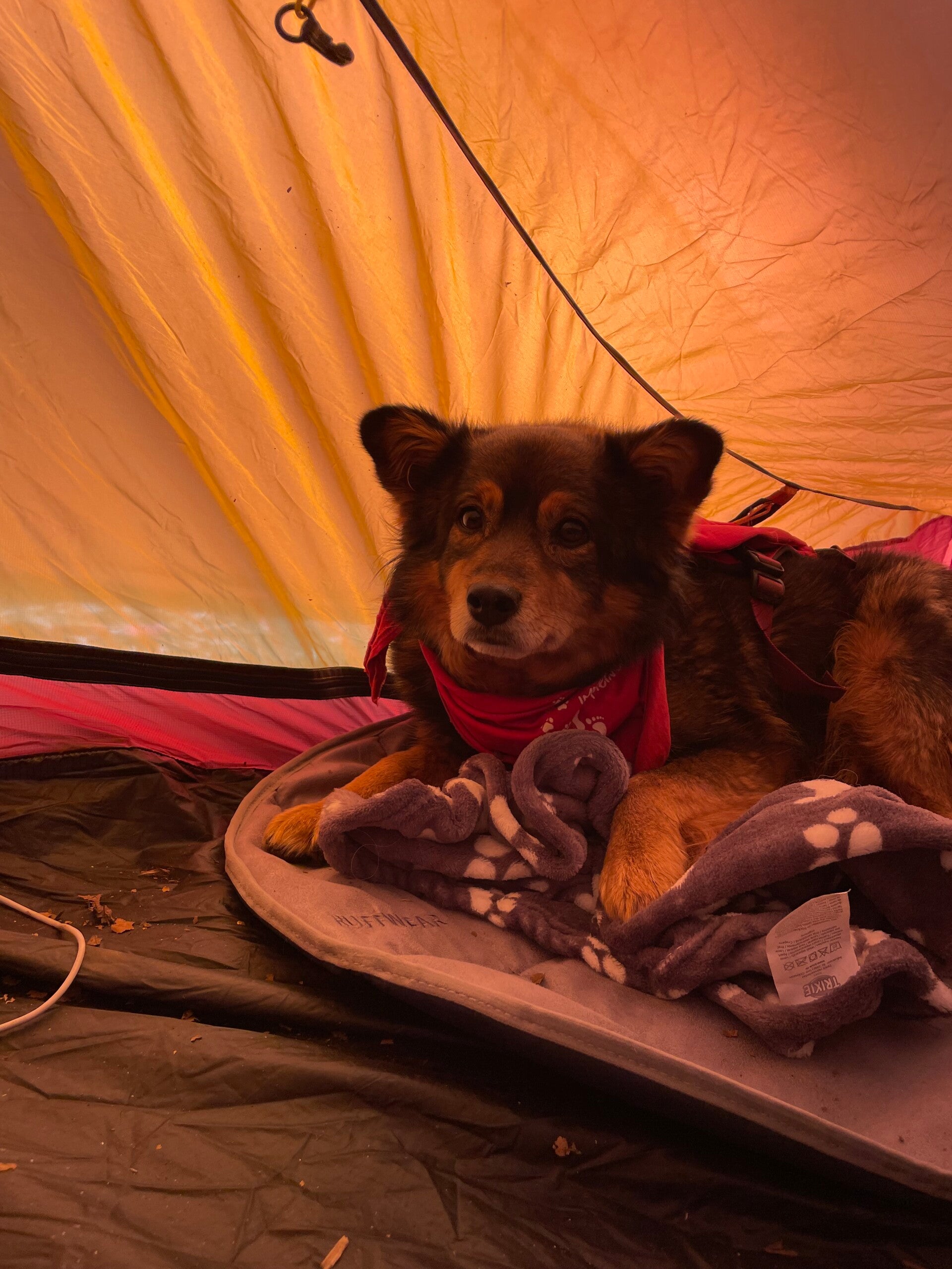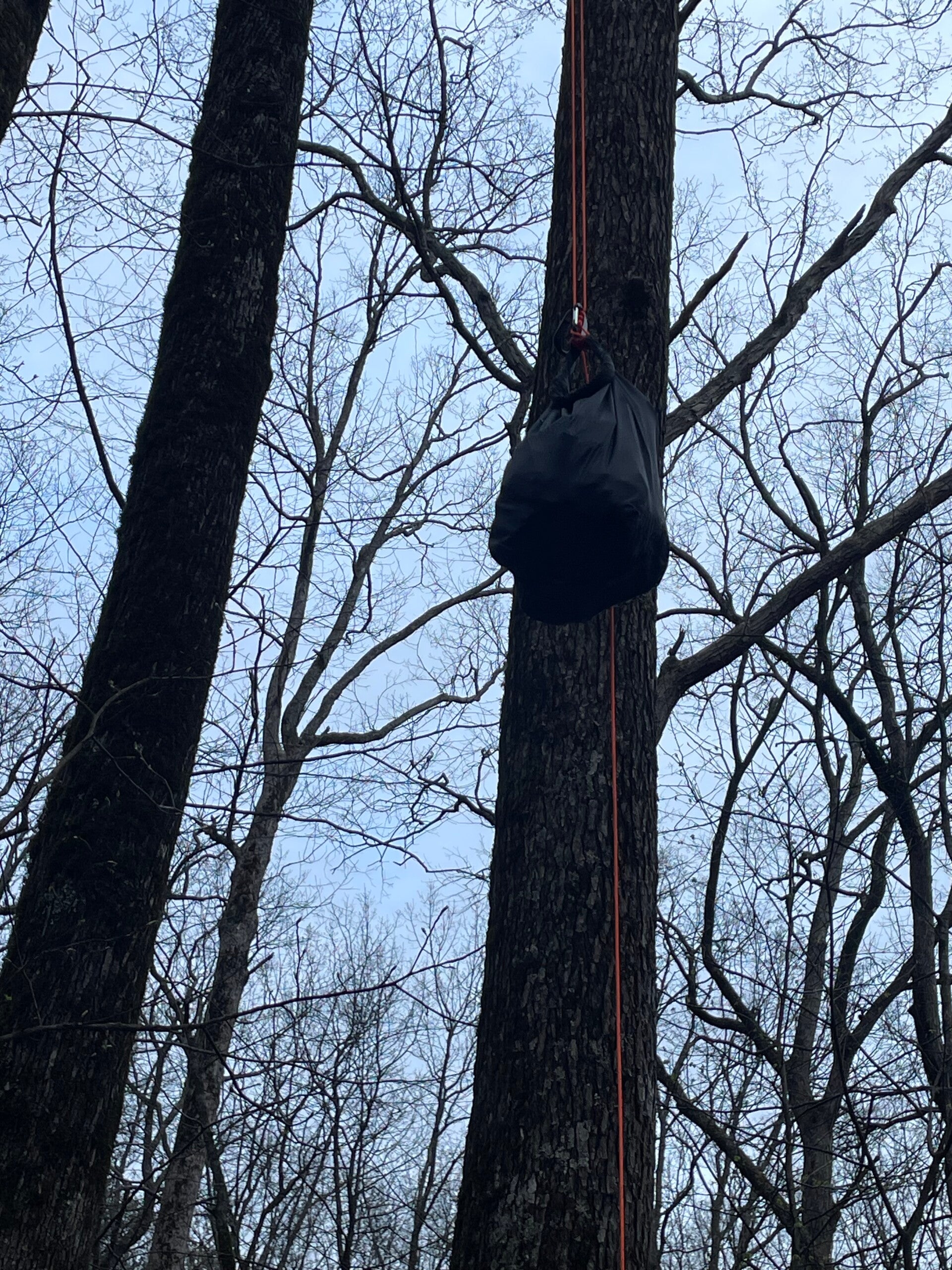 Damit keine Bären an unser Essen kommen, muss es hoch im Baum aufgehängt werden. Die Technik lässt sich mein Lieblingsmensch erklären, um sie im nächsten Moment wieder zu vergessen.Typisch! Ja und dann findet sie ihren Beutel am nächsten Morgen nicht mehr wieder! Was soll man dazu noch sagen? Ich bin nur für die Bodenarbeit zuständig, ich kann mich nicht auch noch um die Dinge über meinem Kopf kümmern.