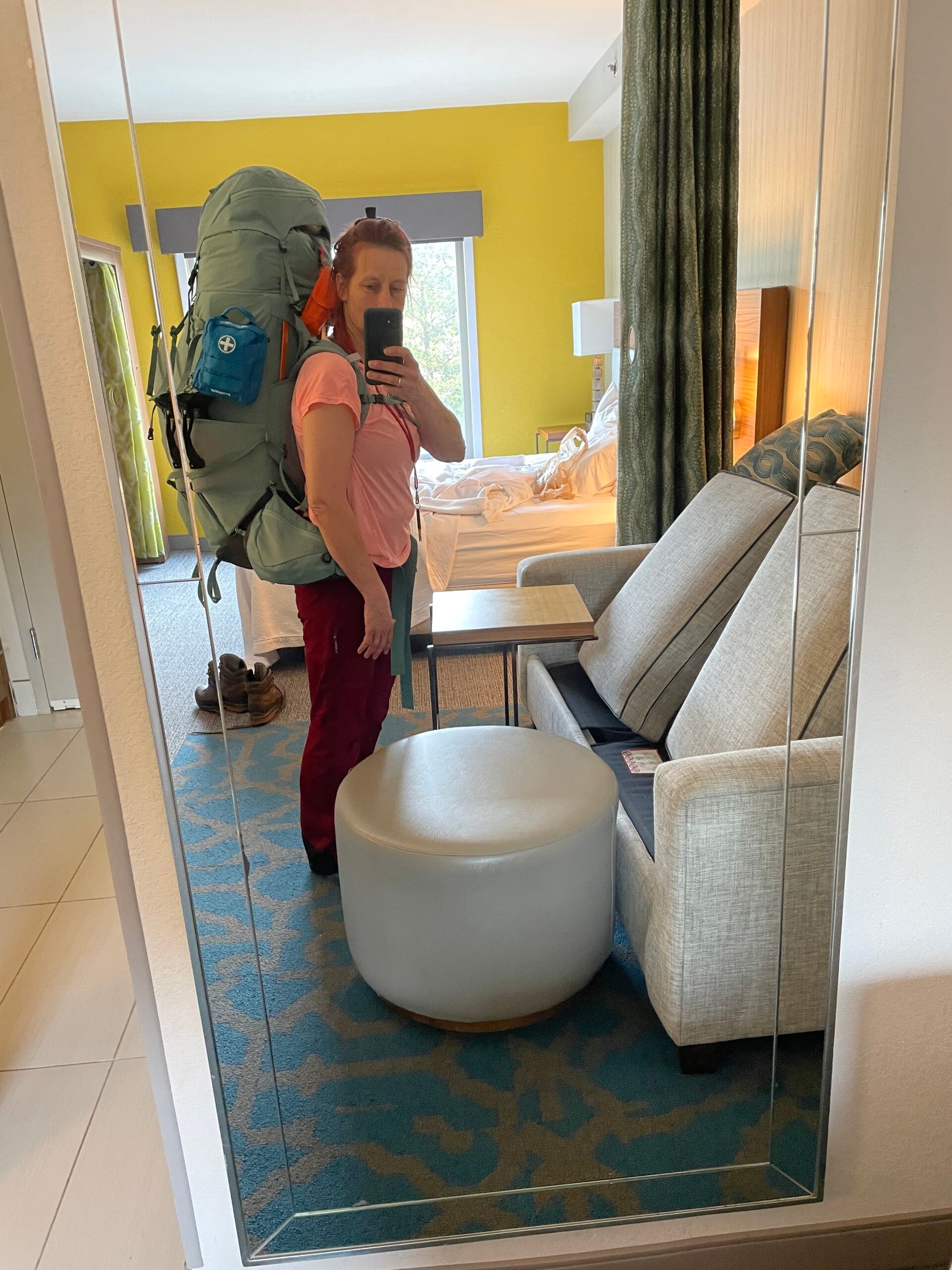 Manchmal wie gesagt manchmal kann mein Lieblingsmensch auch sehr clever sein. Am nächsten Morgen kauft sie alle Lebensmittel für unseren Trail im Supermarkt ein, dann wird alles ordentlich im Rucksack verstaut bevor wir uns heimlich über die Hintertreppe aus dem Hotel schleichen.