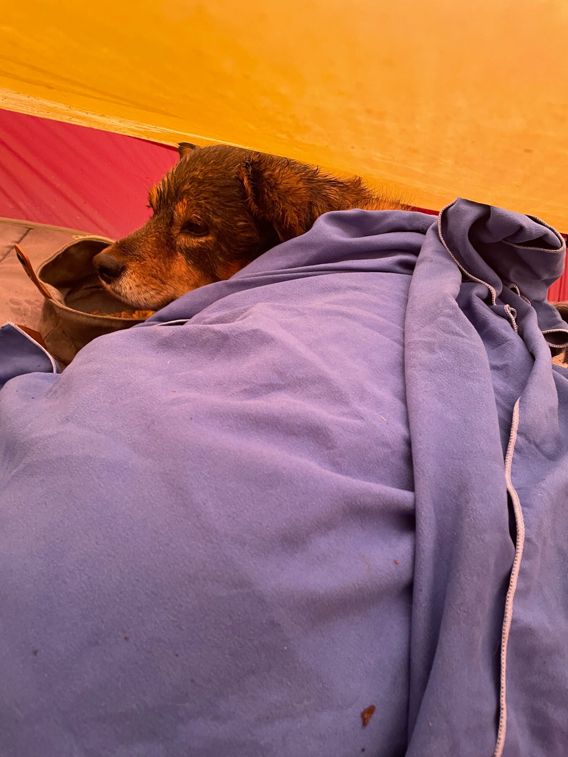 Dort bleiben wir zwei Nächte, allerdings auch im Zelt, weil es dort keine Zimmer für Hunde gibt. Für mich ist es ok und Duschen und Wäschewaschen ist trotzdem mit drin.