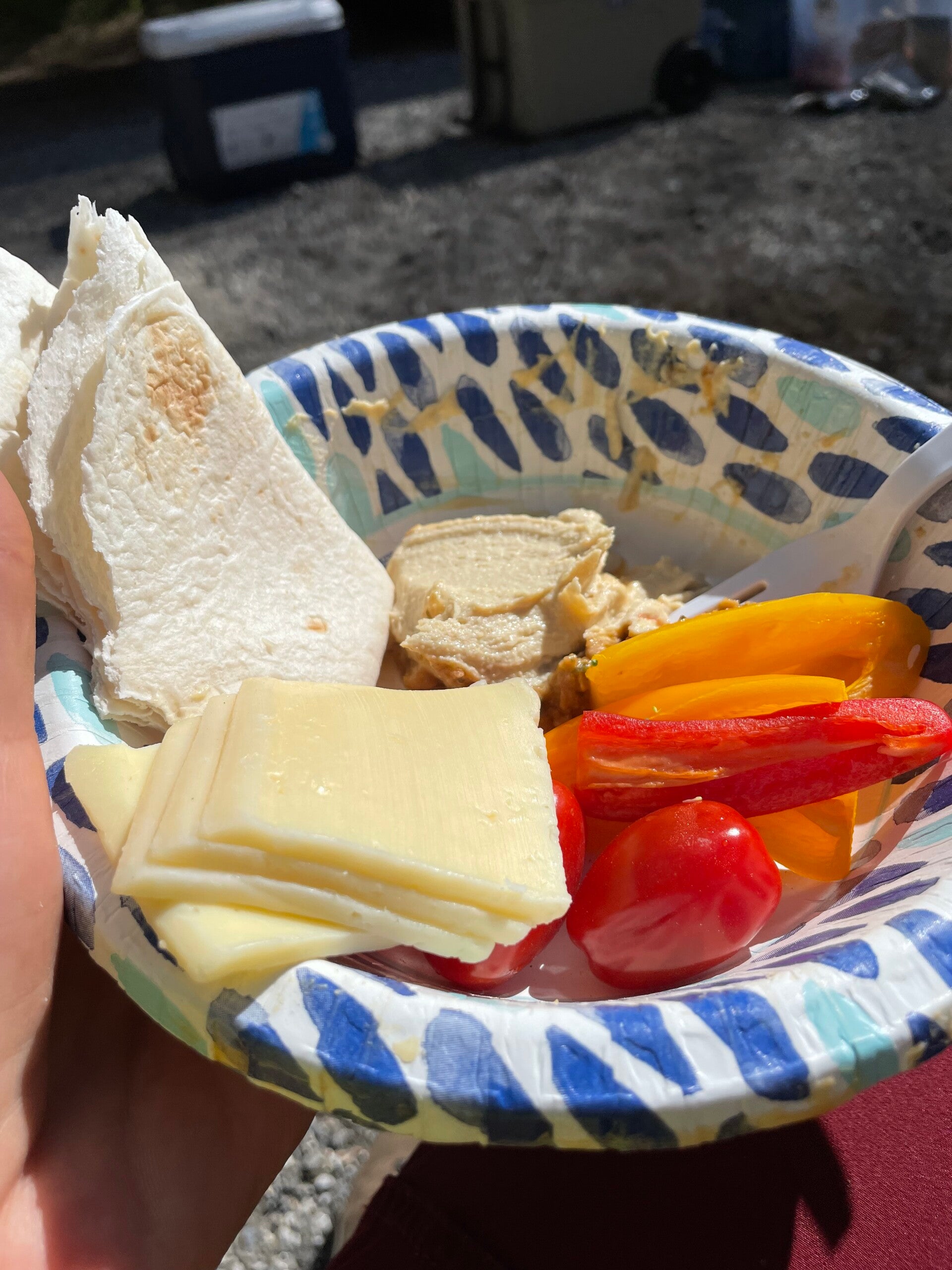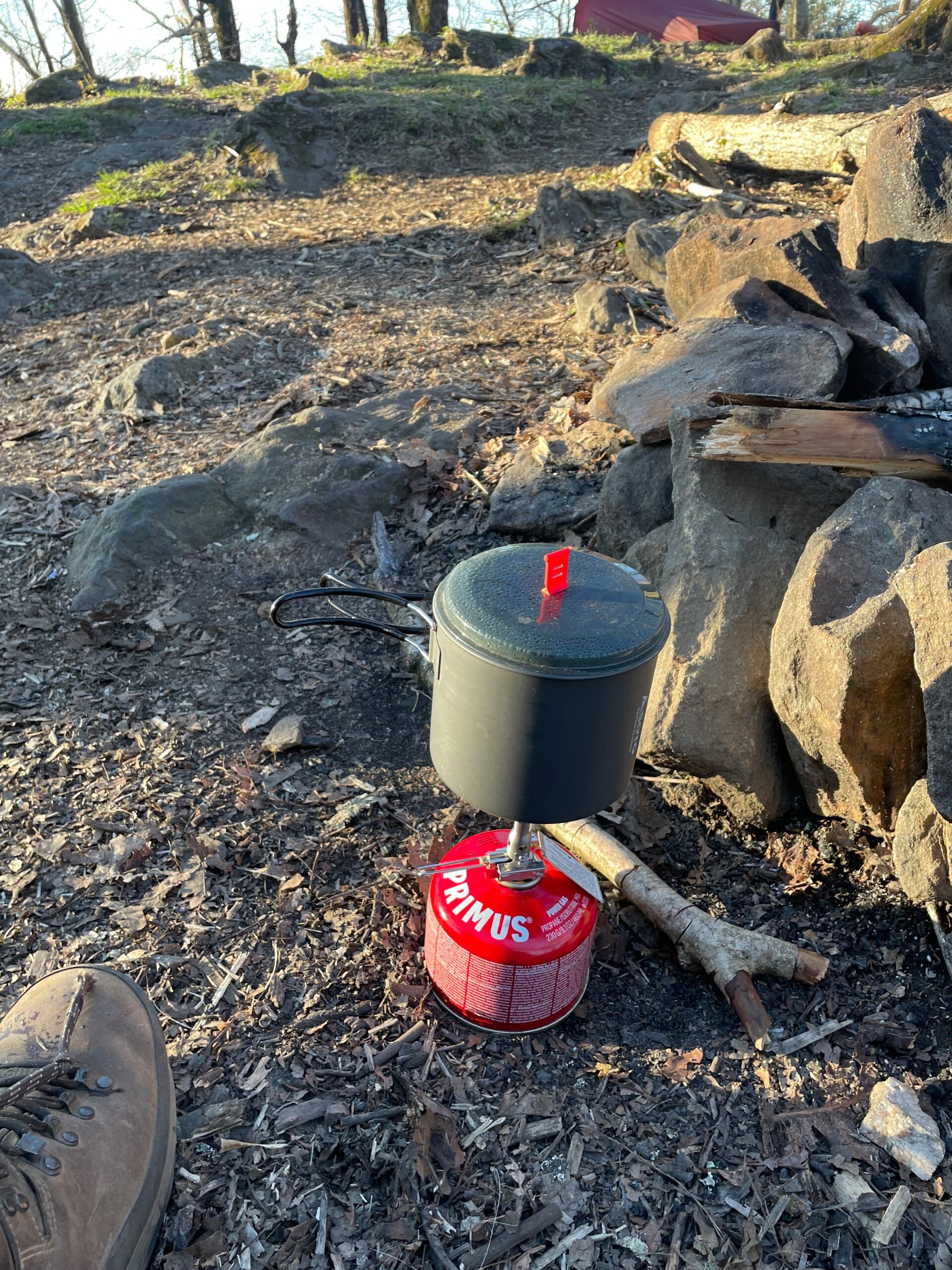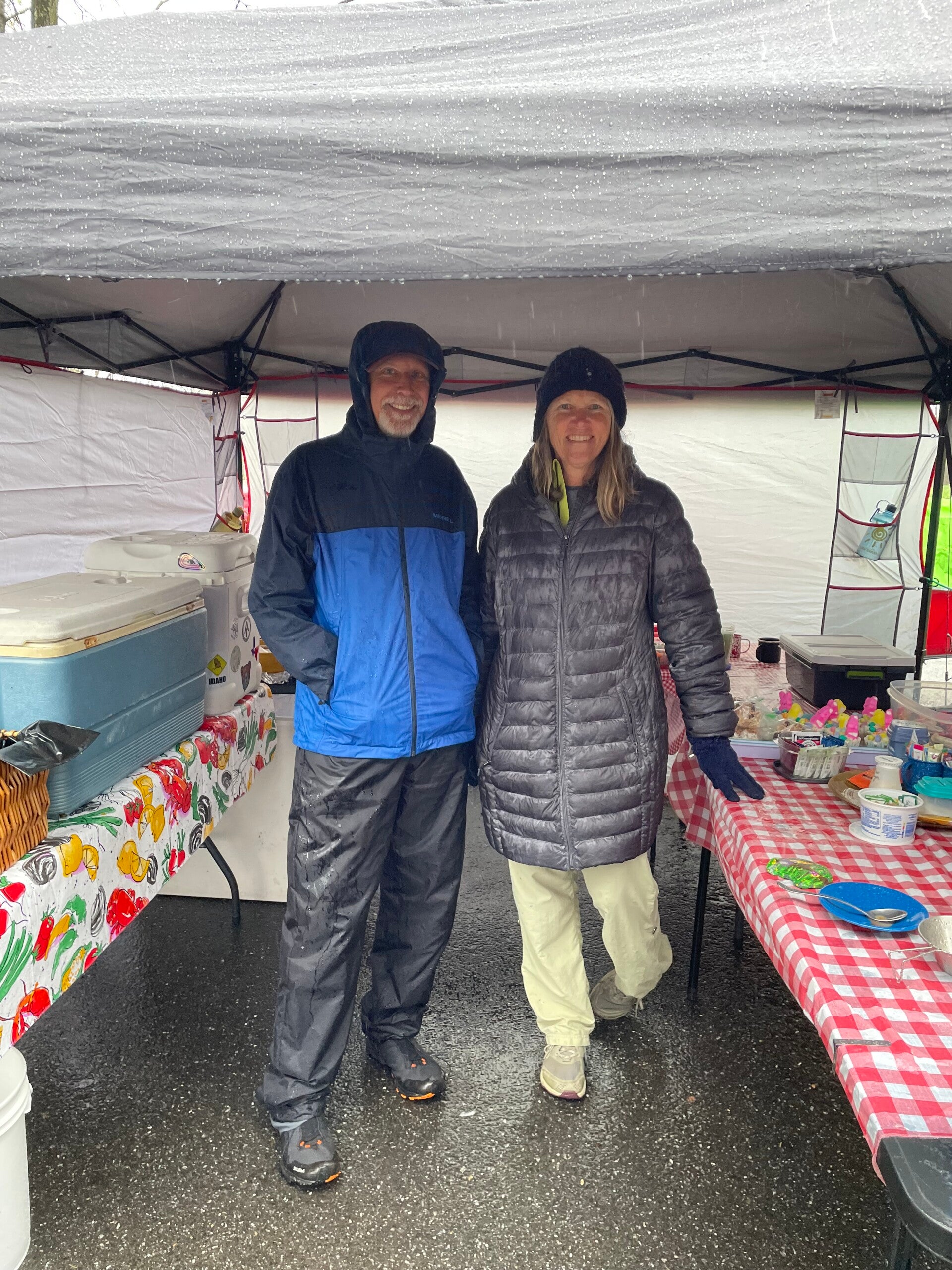 Es ist nicht wasserdicht und ich weiß auch nicht mehr wie lange wir laufen, es geht über Stunden und kein Platz zum Unterstellen. Bilder gibt es kaum von diesem fürchterlichen Tag, da wir keine Unterwasserkamera dabei haben, aber der Tag bleibt mir auch ohne Fotos in Erinnerung. Meine Pfoten sind schon ganz aufgeweicht, als wir einen Parkplatz erreichen, auf dem wir unseren ersten Trail Magic haben. Da stehen zwei Pavillons und nette Zweibeiner winken uns herüber. Wir solten doch Platz nehmen, mein Lieblingsmensch bekommt einen warmen Schlafsack zum wärmen und einen heissen Kakao. Danach gibt es Suppe.