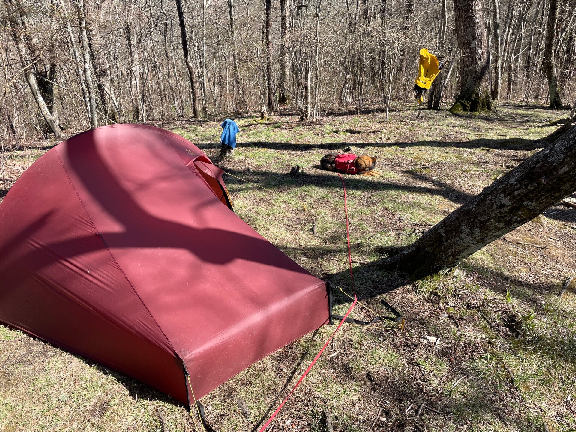 Wir kommen, nachdem wir die Grenze zwischen Georgia und North Carolina überschritten haben, im Regen auf dem Zeltplatz an. Es steht sogar ein weiteres Zelt da, was meinen Lieblingsmenschen sehr beruhigt. Wieder einmal muss sie sich beeilen, das Zelt vor dem großen Regen aufzubauen und ich warte auch schon ungeduldig, um ins Trockene zu kommen.