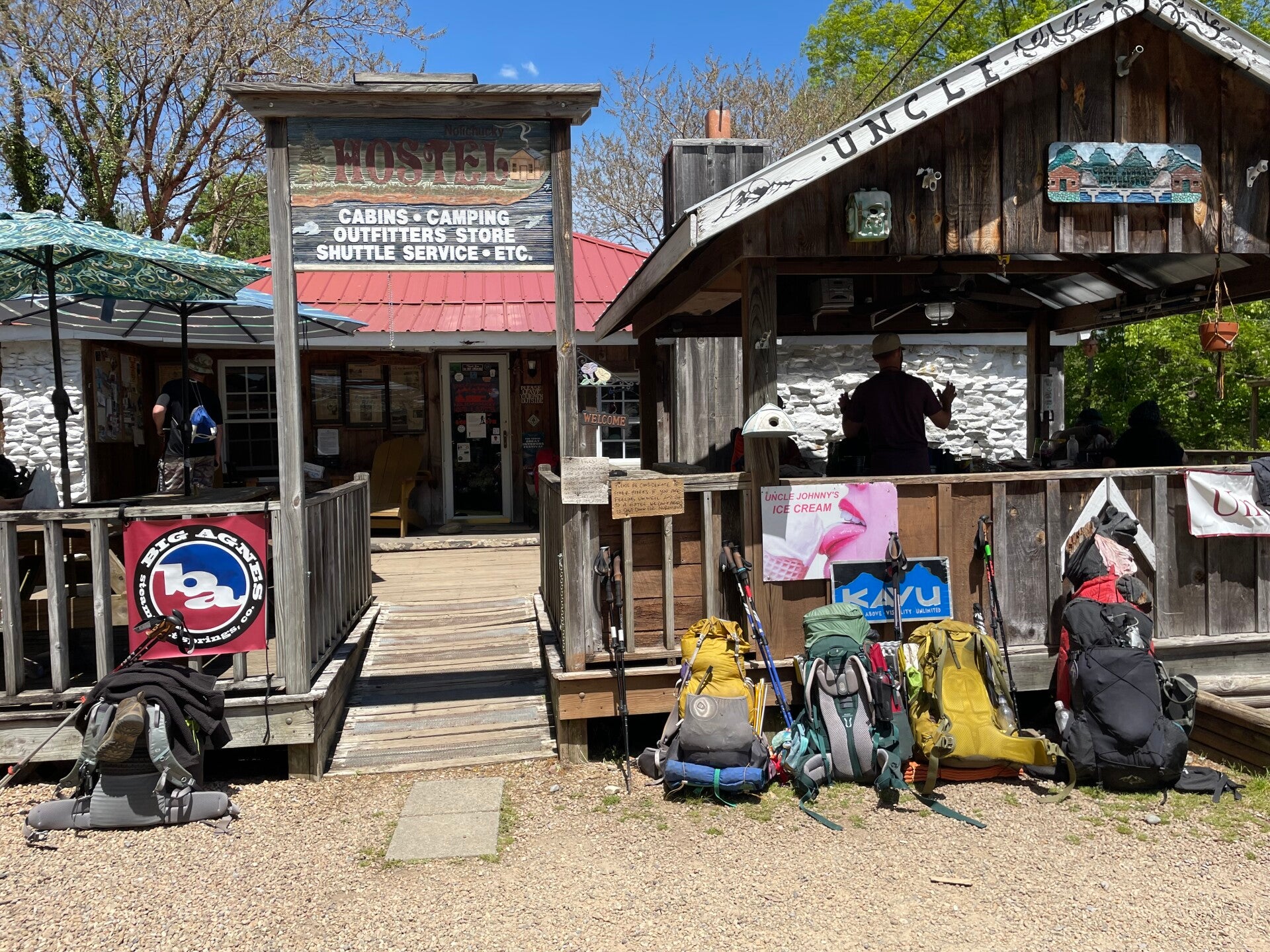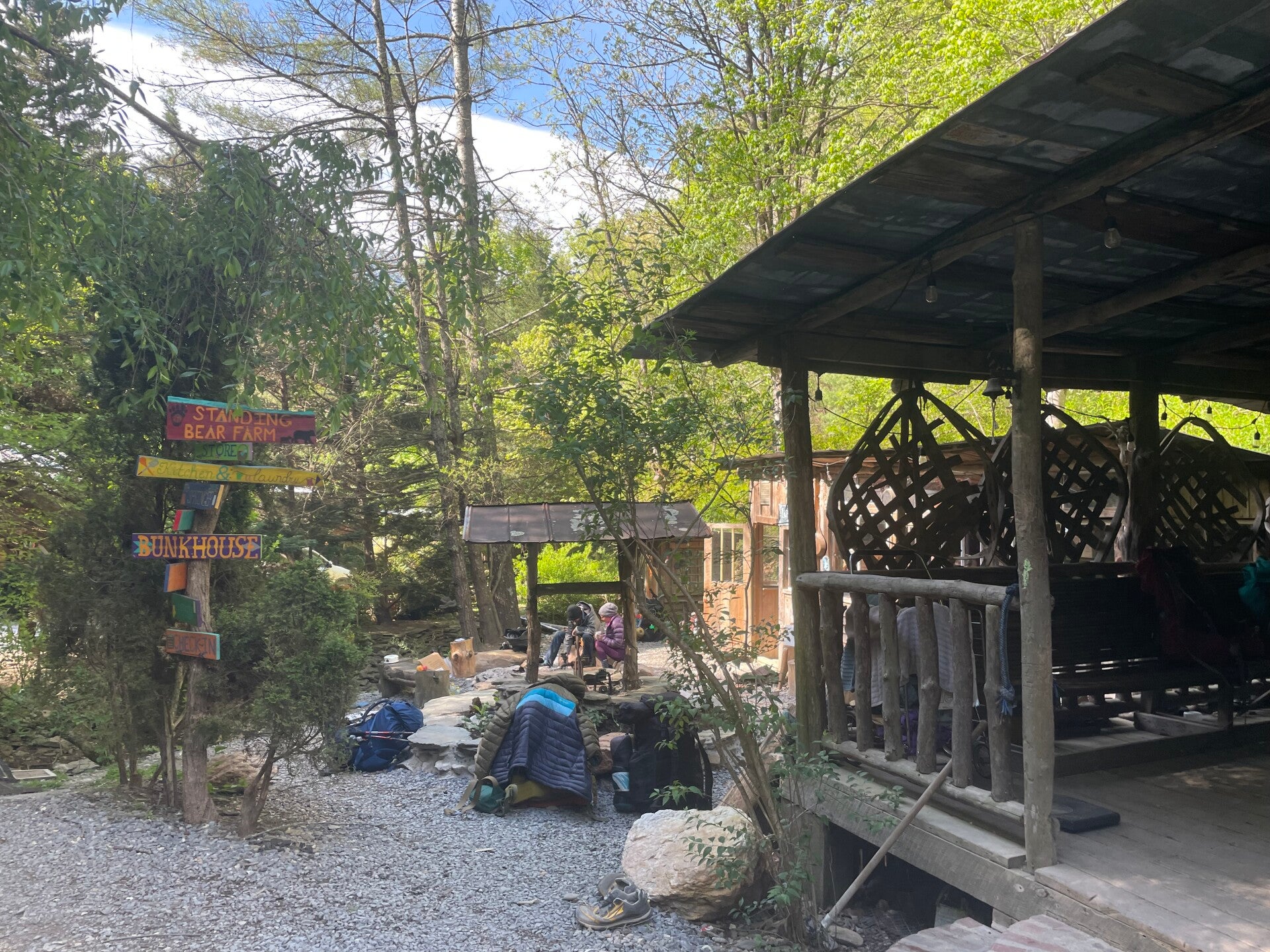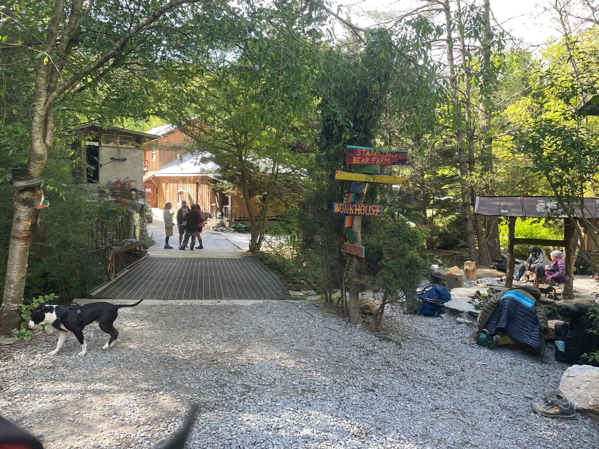 So fahren wir also zusammen los, zunächst zum Supermarkt zum Einkaufen. Ich bleibe mit dem zweibeinigen Fahrer solange im Auto. Holen uns was bei McDonalds und verstehen uns auch so sehr gut. Dann setzen wir die anderen beiden ab und fahren 2 Stunden weiter um die Smokies herum zum Hostel Standing Bear Farm. Bleiben dort für eine Nacht, um dann wieder weiter zu marschieren.