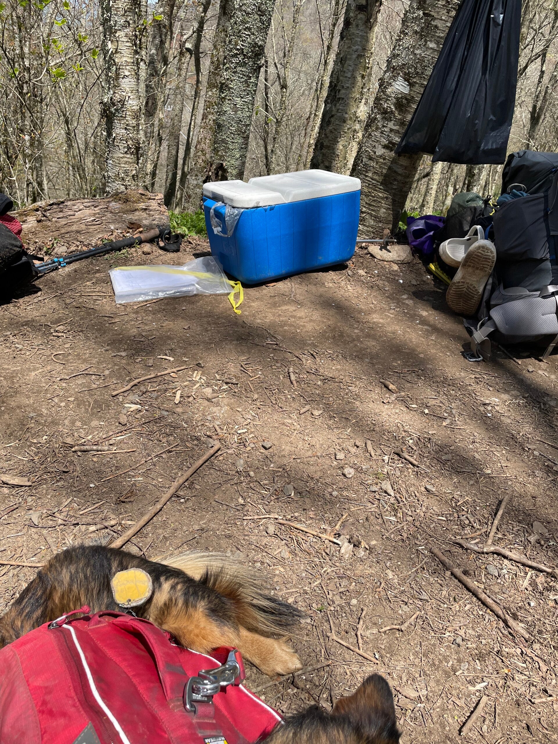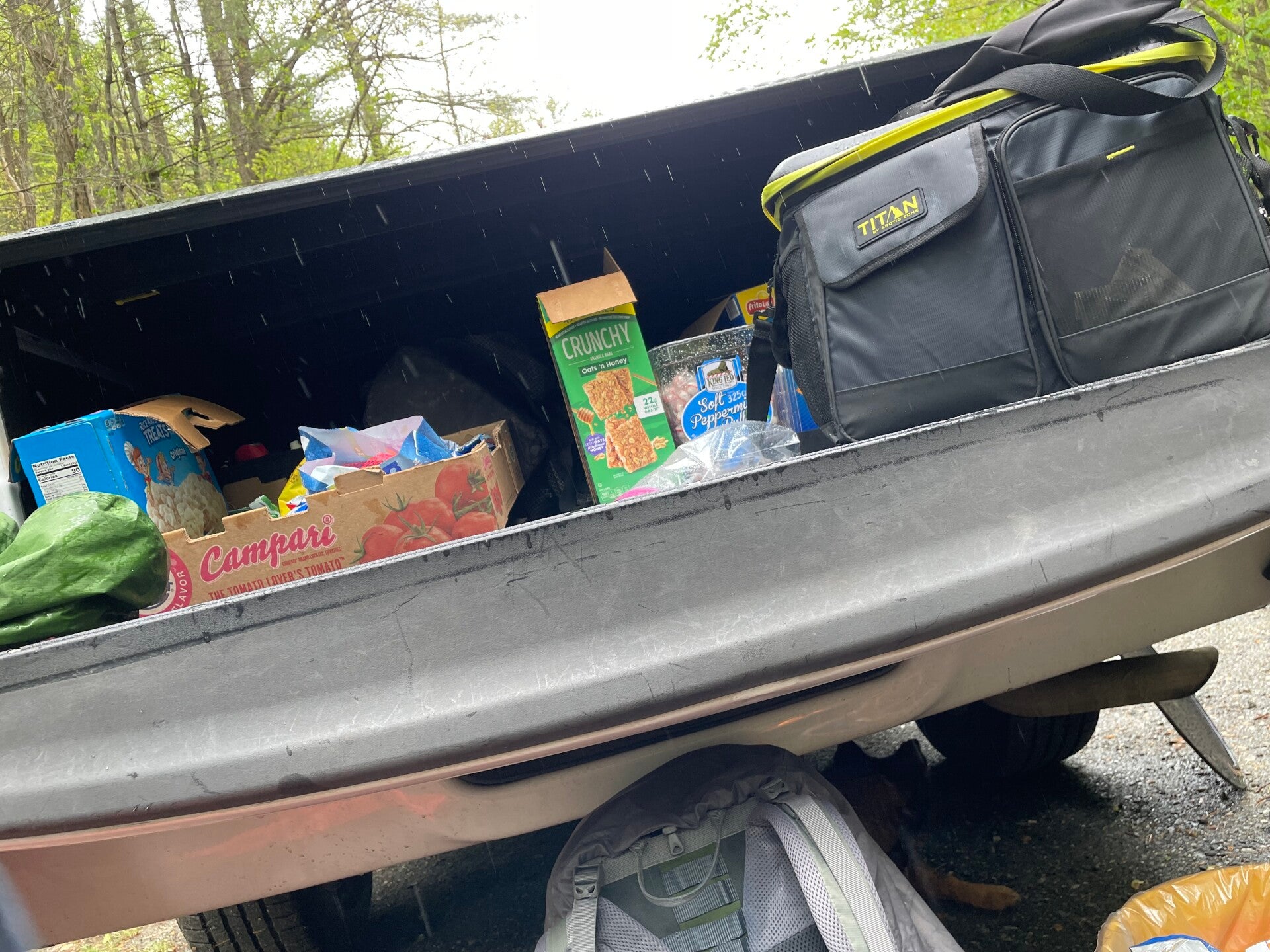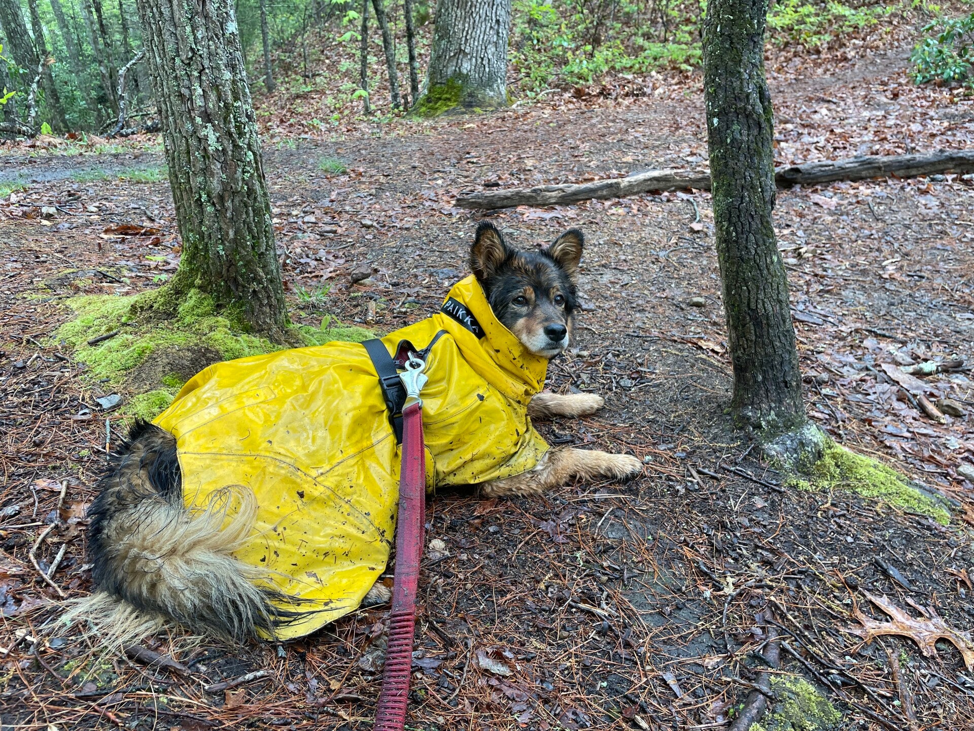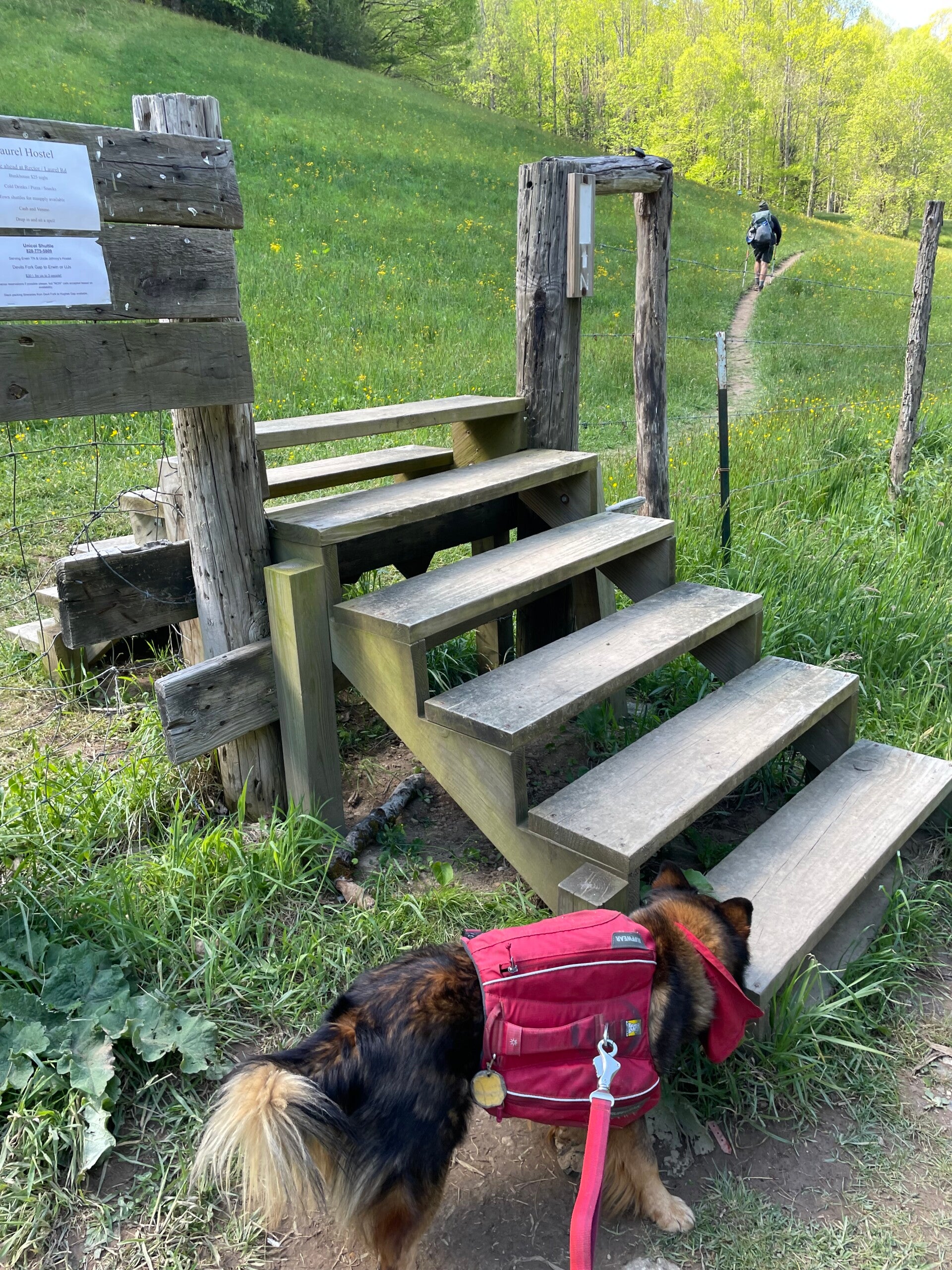 Die nächsten beiden Tage regnet es nur, wir gehen nass schlafen und laufen nass weiter. Sehr unangenehm. Aber wie das hier oft so ist taucht plötzlich ein Trail Magic auf und alles wird besser. So auch auf unserem Weg, 10 km vor Hot Springs. Nette Zweibeiner, die uns mit Snacks und Getränken versorgen und eine Feuerschale zum Wärmen dabei haben.Und nicht nur das, sie bieten auch an, das Gepäck zum Hostel zu fahren, denn ohne läuft es sich doppelt so schnell. Ich würde auch gerne mitfahren, aber das will mein Lieblingsmensch nicht. Fremden das Gepäck anvertrauen ist das eine, aber auch noch den Hund? Nachher ist beides weg! Also musste ich leider auch laufen und das bei dem Wetter!