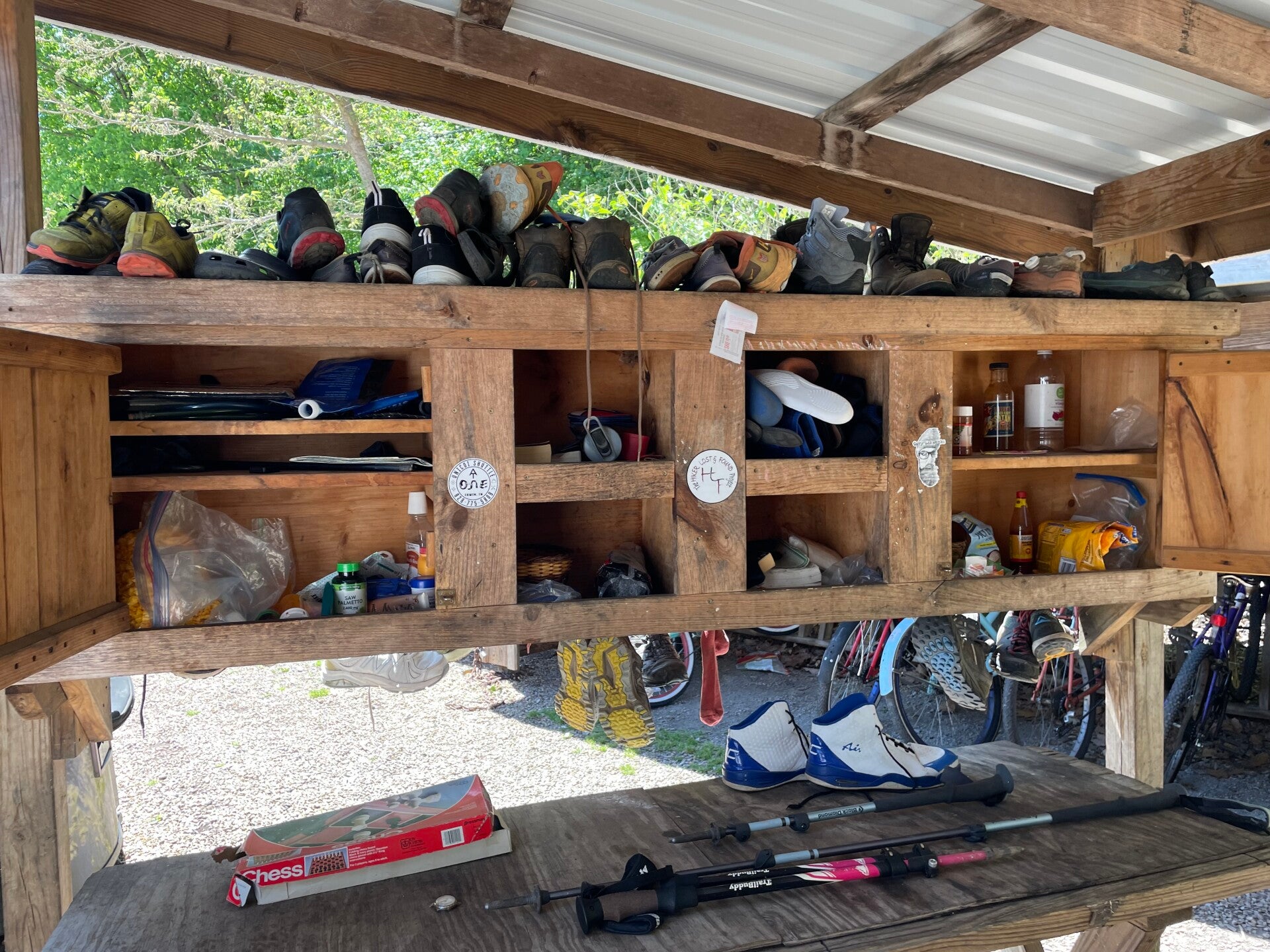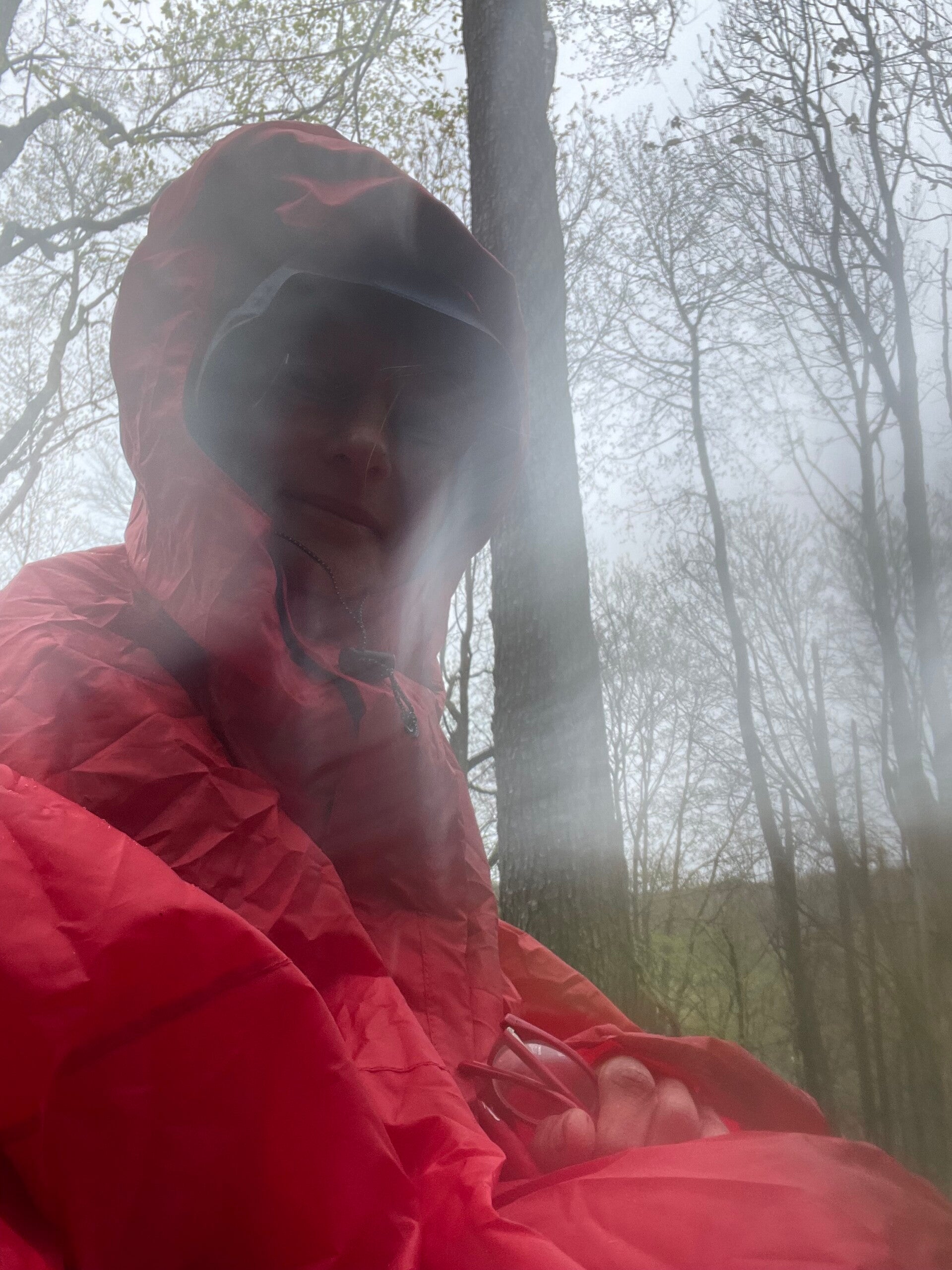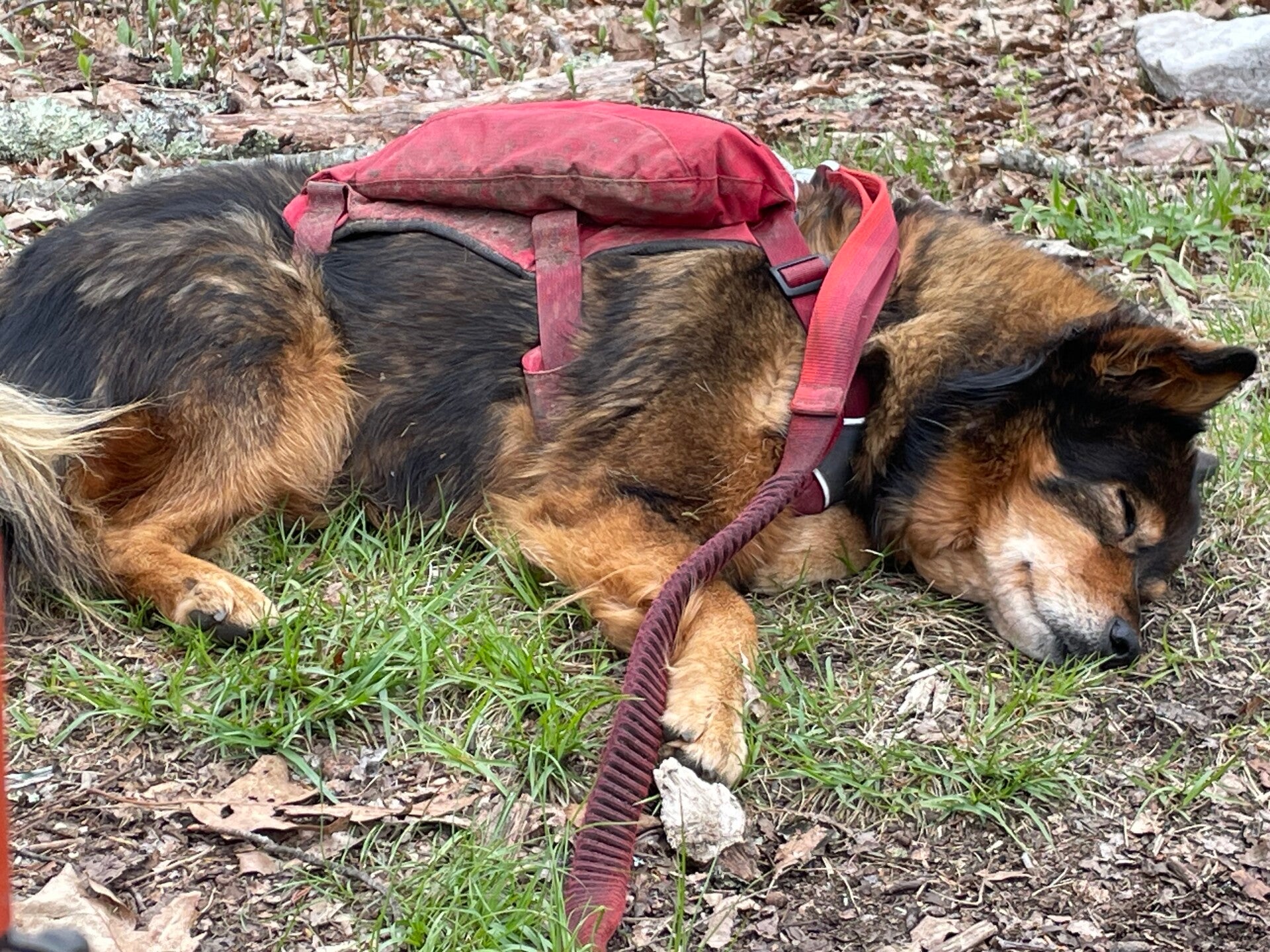 Die nächsten beiden Tage regnet es nur, wir gehen nass schlafen und laufen nass weiter. Sehr unangenehm. Aber wie das hier oft so ist taucht plötzlich ein Trail Magic auf und alles wird besser. So auch auf unserem Weg, 10 km vor Hot Springs. Nette Zweibeiner, die uns mit Snacks und Getränken versorgen und eine Feuerschale zum Wärmen dabei haben.Und nicht nur das, sie bieten auch an, das Gepäck zum Hostel zu fahren, denn ohne läuft es sich doppelt so schnell. Ich würde auch gerne mitfahren, aber das will mein Lieblingsmensch nicht. Fremden das Gepäck anvertrauen ist das eine, aber auch noch den Hund? Nachher ist beides weg! Also musste ich leider auch laufen und das bei dem Wetter!
