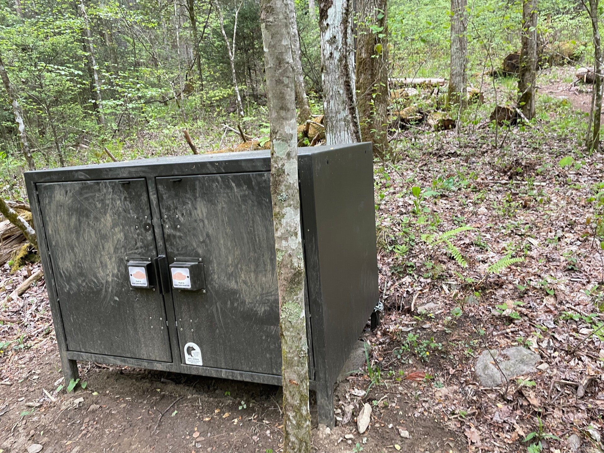 Eigentlich soll es unter uns bleiben, aber ich muss es trotzdem erzählen: Wir sind also am nächsten Tag los marschiert und kommen an einer kleinen Quelle vorbei. Plötzlich bleibt mein Lieblingsmensch unvermittelt stehen, atmet tief durch und tritt den Rückzug an und schlägt dabei ihre Trekkingstöcke gegeneinander. Und wenn das nicht genug wäre fängt sie auch noch an zu singen! So laut habe ich sie noch nie singen gehört und das mitten im Wald. Ich bin ziemlich erstaunt über dieses seltsame Verhalten. Nach einiger Zeit geht sie ängstlich, aber laut klappernd und singend wieder der Quelle entgegen. Was macht sie bloß? Plötzlich steht ein zweibeiniger Hiker an der Quelle und lacht und auch mein Lieblingsmensch lacht erleichtert. Da hat sie doch tatsächlich geglaubt einen Bären zu sehen. Angeblich war da was braunes im Gebüsch. Ist ein Schwarzbär braun? Ich glaube kaum. Wie peinlich! Einen Zweibeiner mit einem Bären zu verwechseln! Das wäre mir nicht passiert!