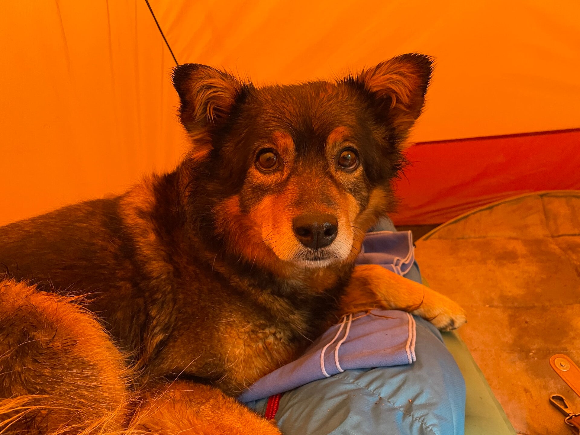 Bei schönen Wetter geht es ja noch, aber bei Regen? Da würde ich am liebsten den ganzen Tag im Zelt verbringen und vor mich hin schlummern. Leider denken Zweibeiner da anders, so auch mein Lieblingsmensch, die meint, bei Nieselregen könne man ruhig laufen. Regen ist Regen, auch bei Nieselregen bin ich irgendwann nass! Das nur mal so aus meiner Hundeperspektive betrachtet.