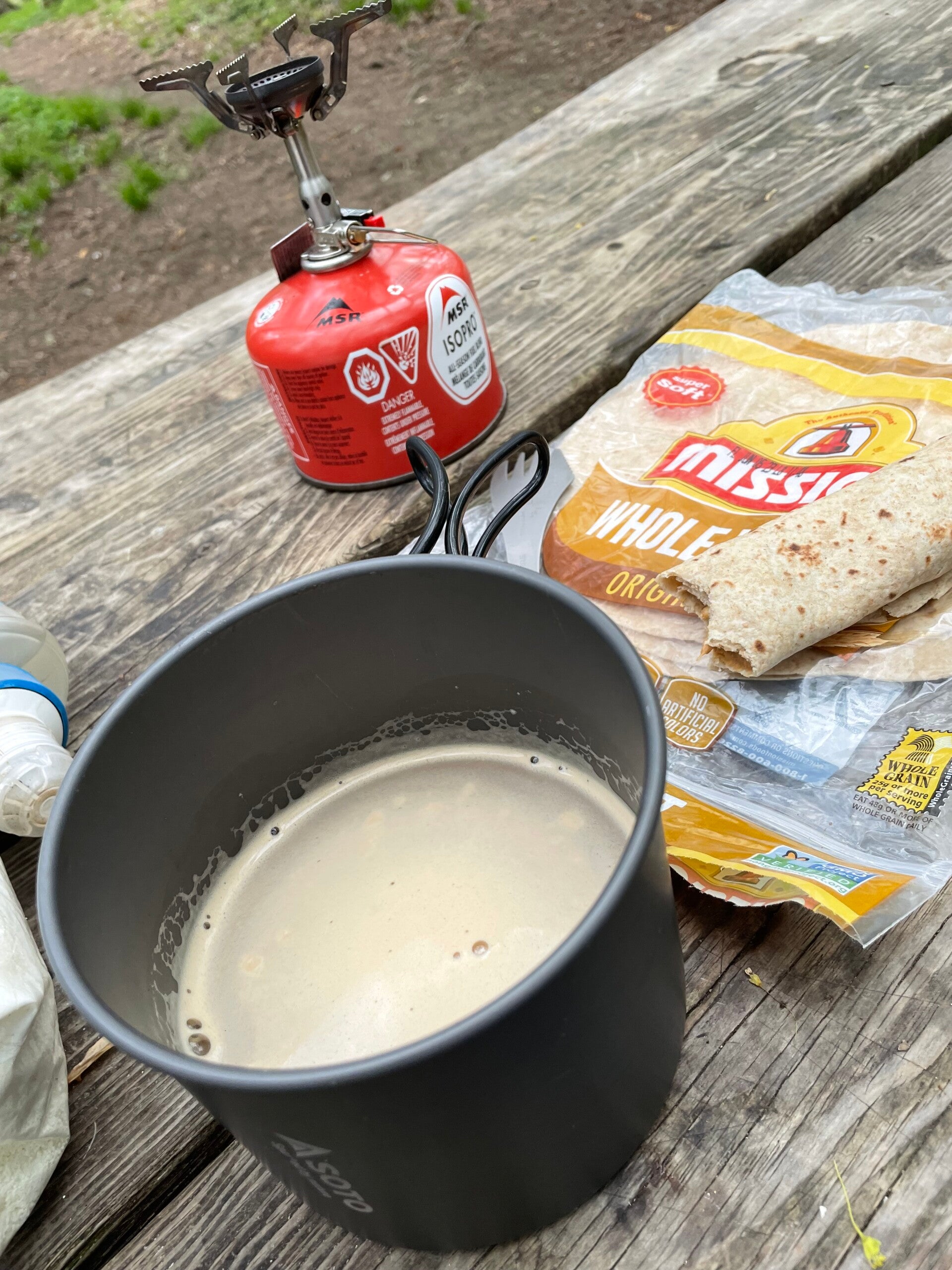 Ok, wenn das erledigt ist, wird gefrühstückt. Meist gibt es Kaffee, Müsli oder warmen Haferbrei, Schokolade und Wraps mit Erdnussbutter. Das ist der Moment wo auch ich ein bisschen wach werde, sobald der Geruch dieser Erdnussbutter in meine Nase steigt möchte ich auch etwas davon abhaben. Mit Erfolg natürlich!