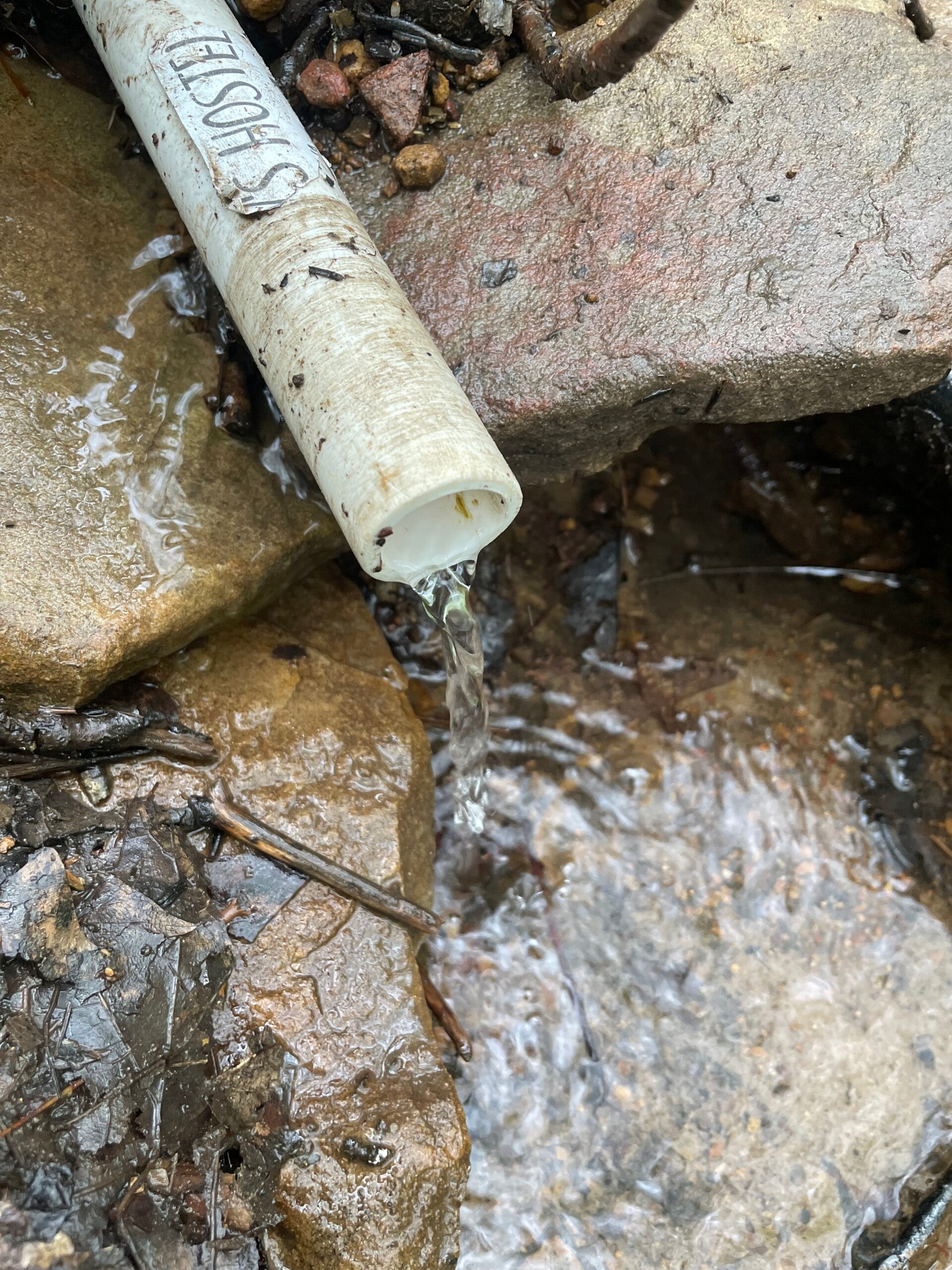 Wasser zu besorgen ist auch nicht immer einfach. Nicht immer wenn es auf der Karte heißt, dass es Wasser gibt, kann es abgefüllt werden. Ist es nur ein kleines Bächlein bin ich zwar in der Lage, meinen Durst zu stillen, aber mitnehmen können wir nichts. Da muss schon was größeres kommen wo mein Lieblingsmensch die Flaschen drunter halten kann. Gut ist es, wenn dort bereits ein kurzes Plastikrohr liegt oder ein großes Blatt das Wasser bündelt.