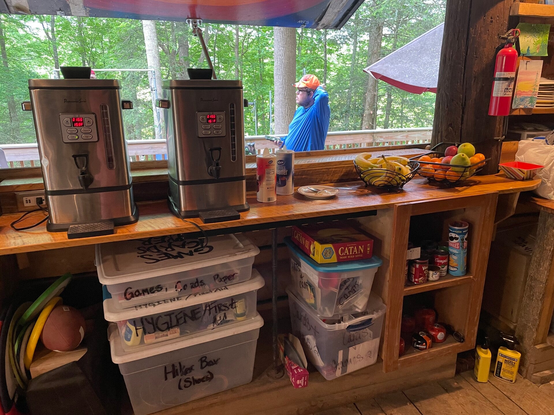 Der Regen hält nicht nur uns vom Weiterlaufen ab,er hält auch die Mäuse und Bären fern, die sonst vielleicht aufgetaucht wären. Es gibt auch keine Spinnen!