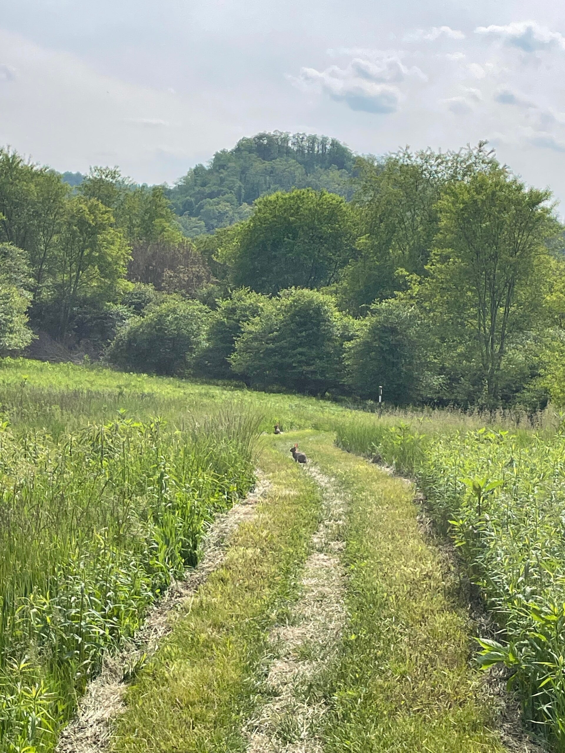 Weiter geht es über Bahnschienen hinweg, über weite Wiesen, an Bächen und Flüssen entlang zum Bear Garden Hostel: Einmal Duschen und Wäsche waschen!