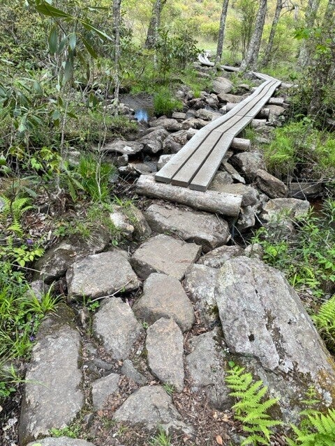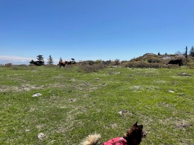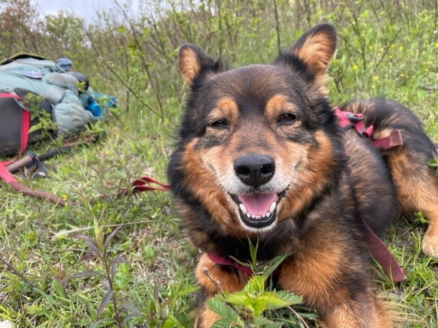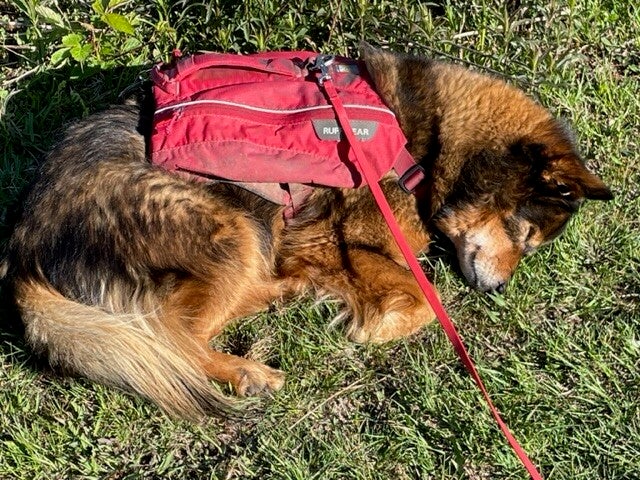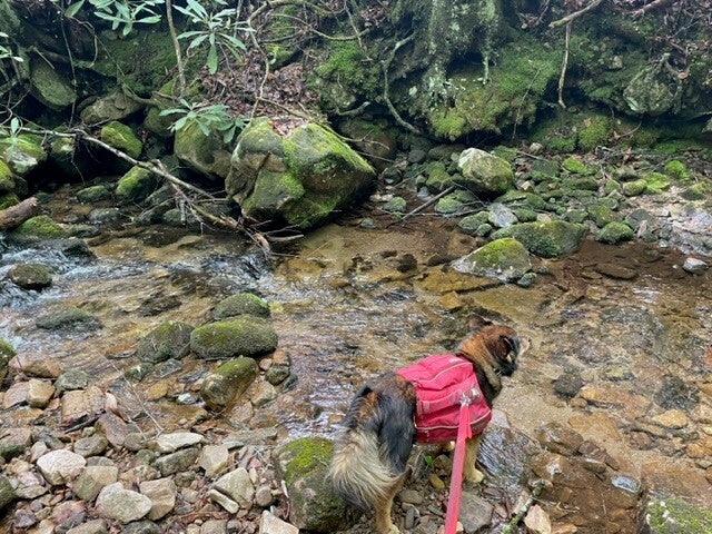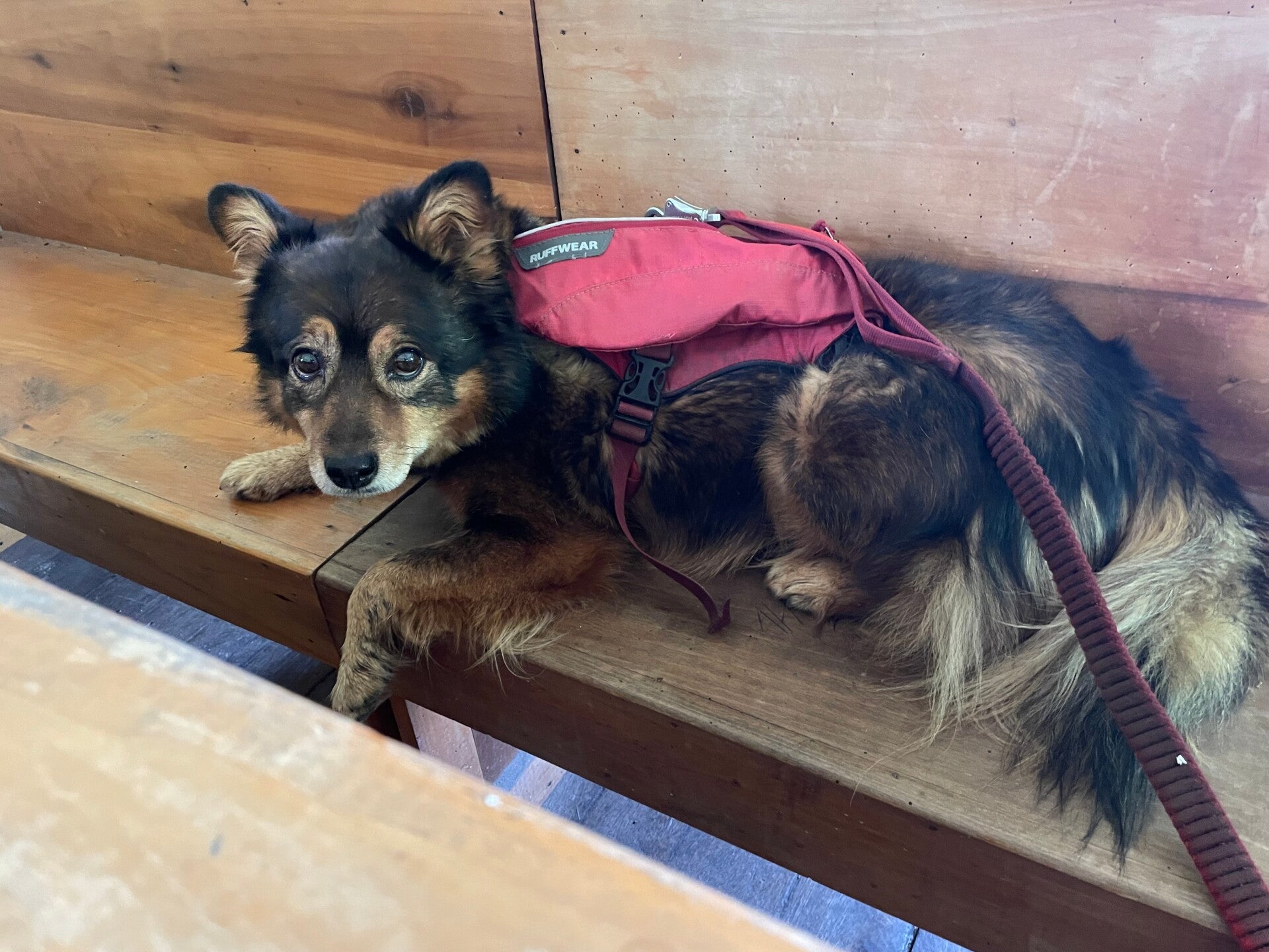 Auf dem Weg zum Trimpi Shelter treffen wir zwei super nette zweibeinige Hikerinnen aus Kanada, die so begeistert von mir sind, dass sie mir eine große Tüte mit getrockneten Fleischstücken und später auch noch ein großes Stück Käse schenken. Sehr, sehr lecker, aber leider schon alles aufgefuttert. Jetzt ist bis auf Thunfisch nur noch Trockenfutter übrig. Jeden Tag Trockenfutter das ist als ob ihr jeden Tag nur Kekse essen müsstet. Auf Dauer ist das nichts. Ich kenne ein paar Hundekumpels, die bekommen auch nichts anderes, ihr Leben lang nur die selben Kekse! Da habe ich es dann doch besser, zumindest zu Hause. Mal Fleisch, mal einen Knochen, mal Leber, unterwegs und zwischendurch immer wieder andere Leckerlies. Ach und wenn ich dran denke, wenn mein Lieblingsmensch Hühnchen kocht. Schon der Geruch ist so schön und ich bekomme jedes Mal die leckere Haut zum Futtern. Oder die feine Leberwurst, die sie für mich hat. Ja auf all die schönen Dinge muss ich hier verzichten und mich mit den Keksen zufrieden geben.