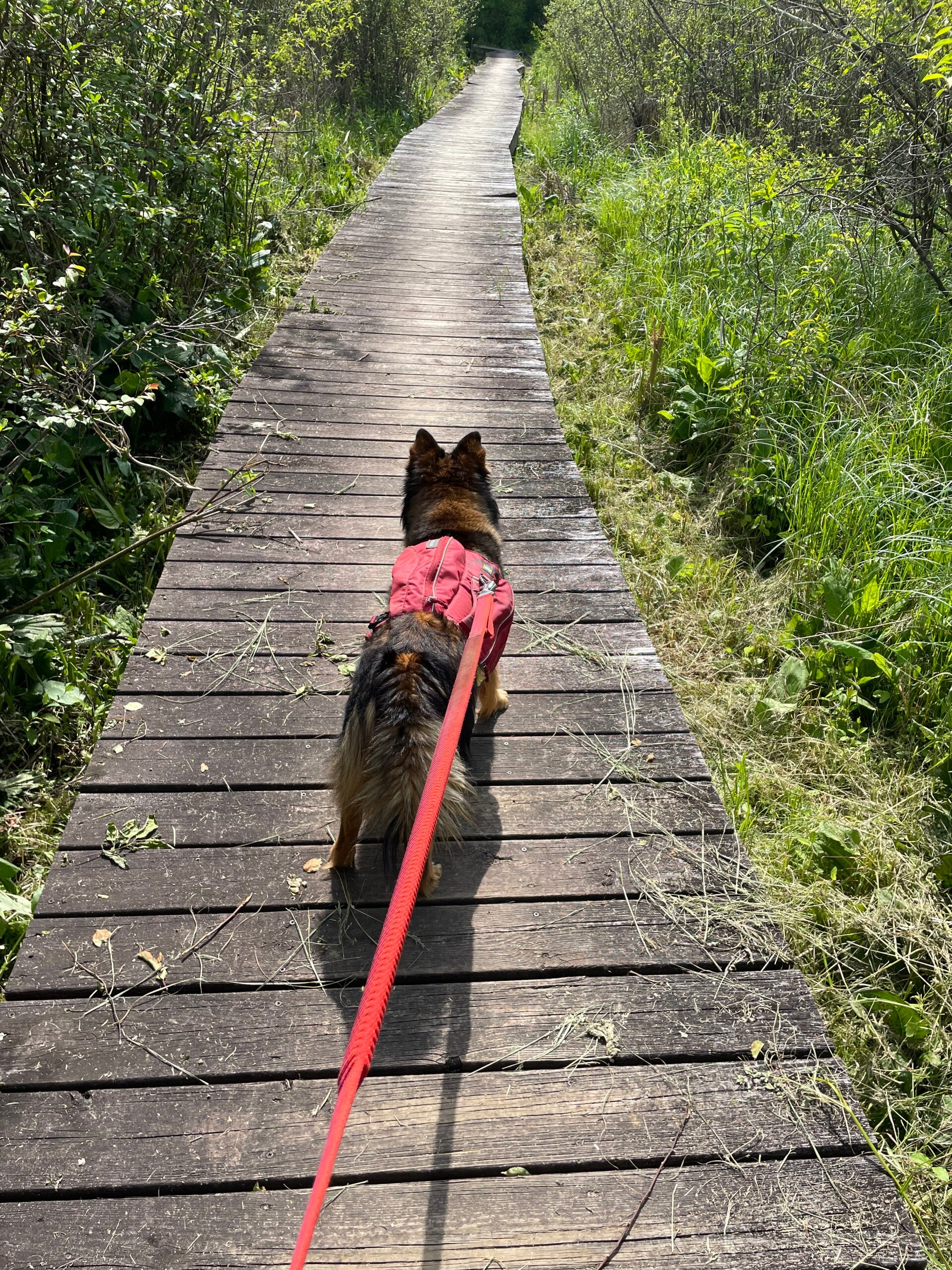 Mir ist das ja ganz recht. Es wäre da bestimmt laut und voll gewesen, also nichts für meine zarten Hundeohren. Und wer weiß ob ich nicht wieder diesem Hund über den Weg gelaufen wäre, den ich gar nicht mag und der mir schon öfters auf dem Trail entgegen kam.