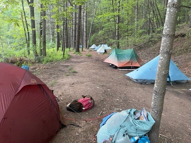 Mein Lieblingsmensch isst noch Pizza, ich feine, neue Leckerlies und dann geht es zurück zum Shelter, wo wir unser Zelt aufstellen. Ist übrigens verboten. Zelten ist im Bereich dieses Shelters nicht erlaubt. Warum auch immer.
