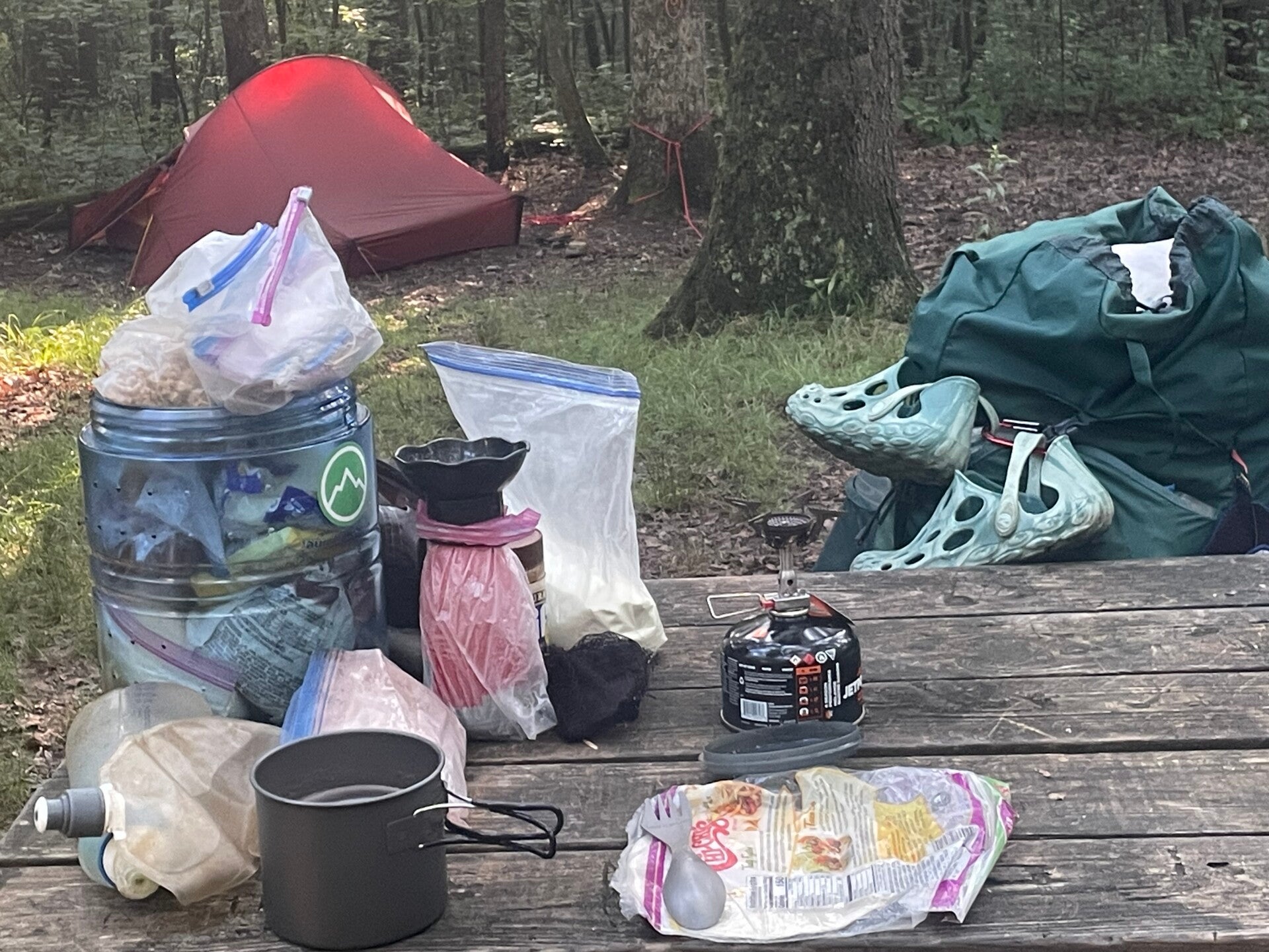 Nach einer einem mühevollen Pfad durch einen Irrgarten von Felsen, bei dem selbst ich nicht mehr genau weiß wo wir lang müssen ( wie hat das Thor geschafft?) erreichen wir den Zeltplatz von Boiling Springs, der direkt neben den Eisenbahnschienen liegt. Ob ich wegen der Güterzüge oder der Wärme nicht gut schlafen kann weiß ich nicht so richtig.