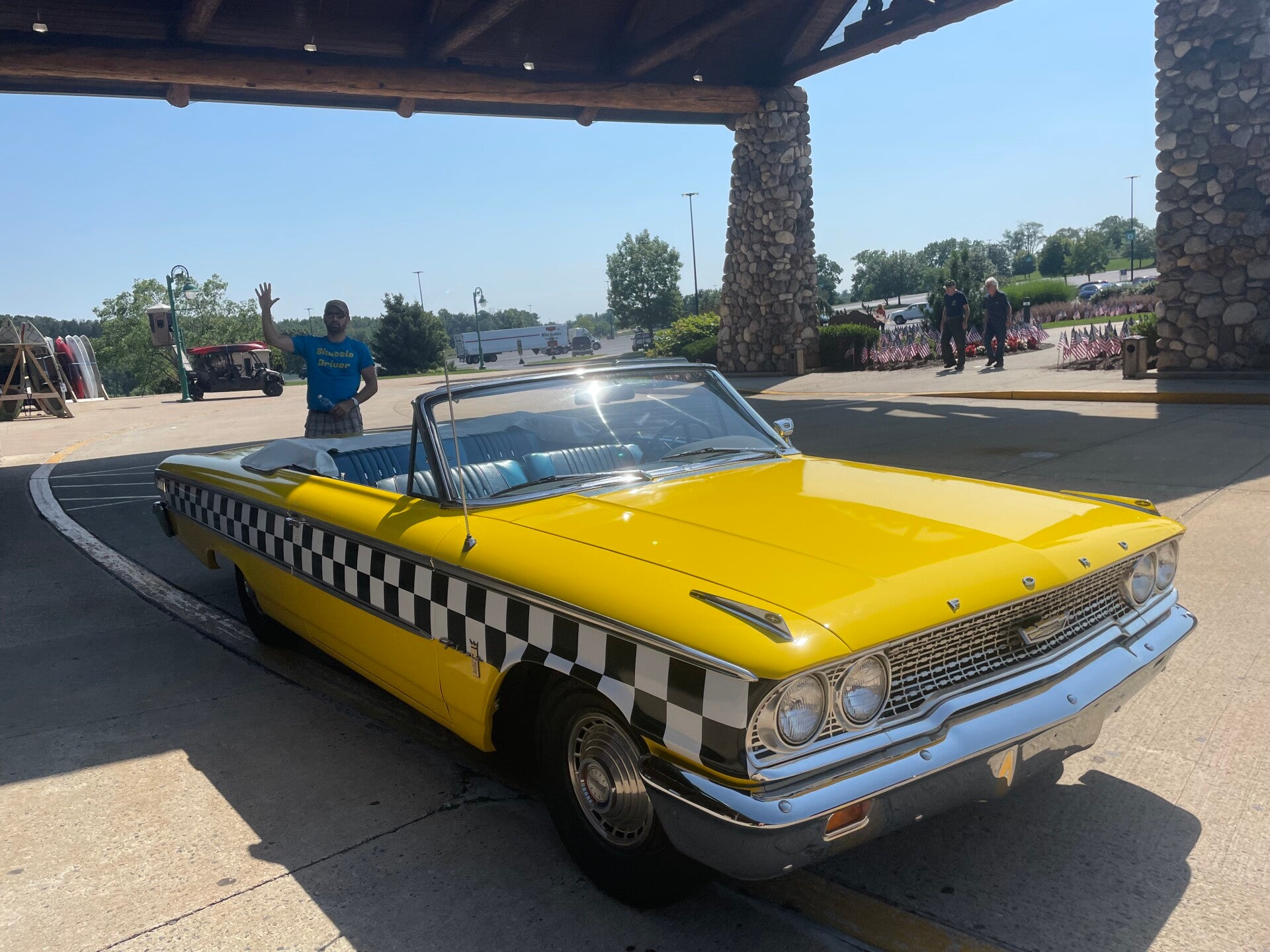 Ohne Regen geht es dann am nächsten Morgen über den Eagle Nest Shelter weiter nach Port Clinton wo wir mit einem Auto ohne Dach zum Outdoor Ausrüster Cabelas gebracht werden. Der zweibeinige Shuttlefahrer Brian nimmt eigentlich keine Hunde mit, da zu befürchten ist, dass die während der Fahrt rausspringen. Aber so ein Hund wie ich darf natürlich mit und der darf dann auch später wieder als Service dog mit ins Geschäft.