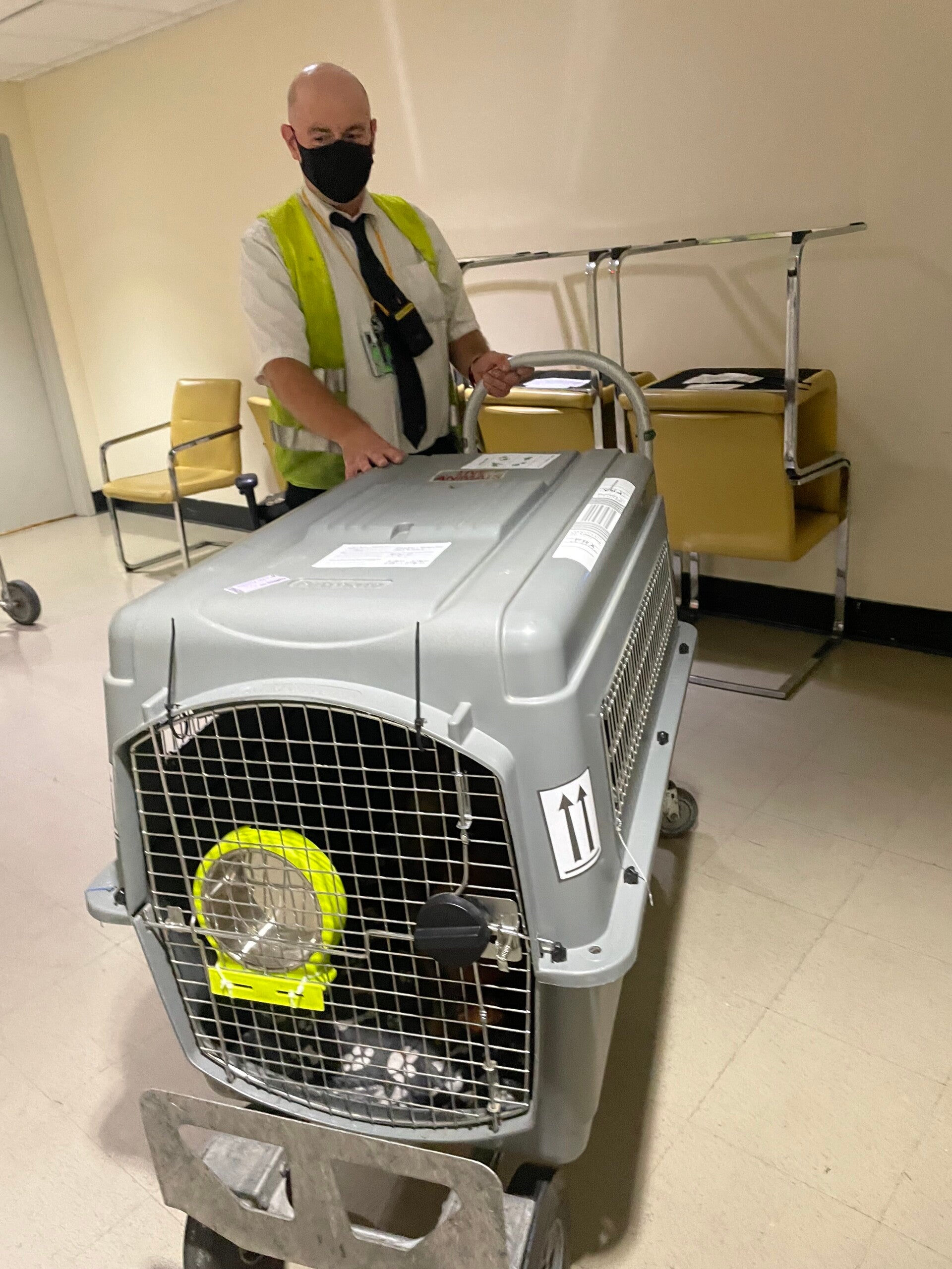 Am folgenden Tag geht es per Taxi zum Flughafen. Dort warten wir auf Ruth und die Transportbox.