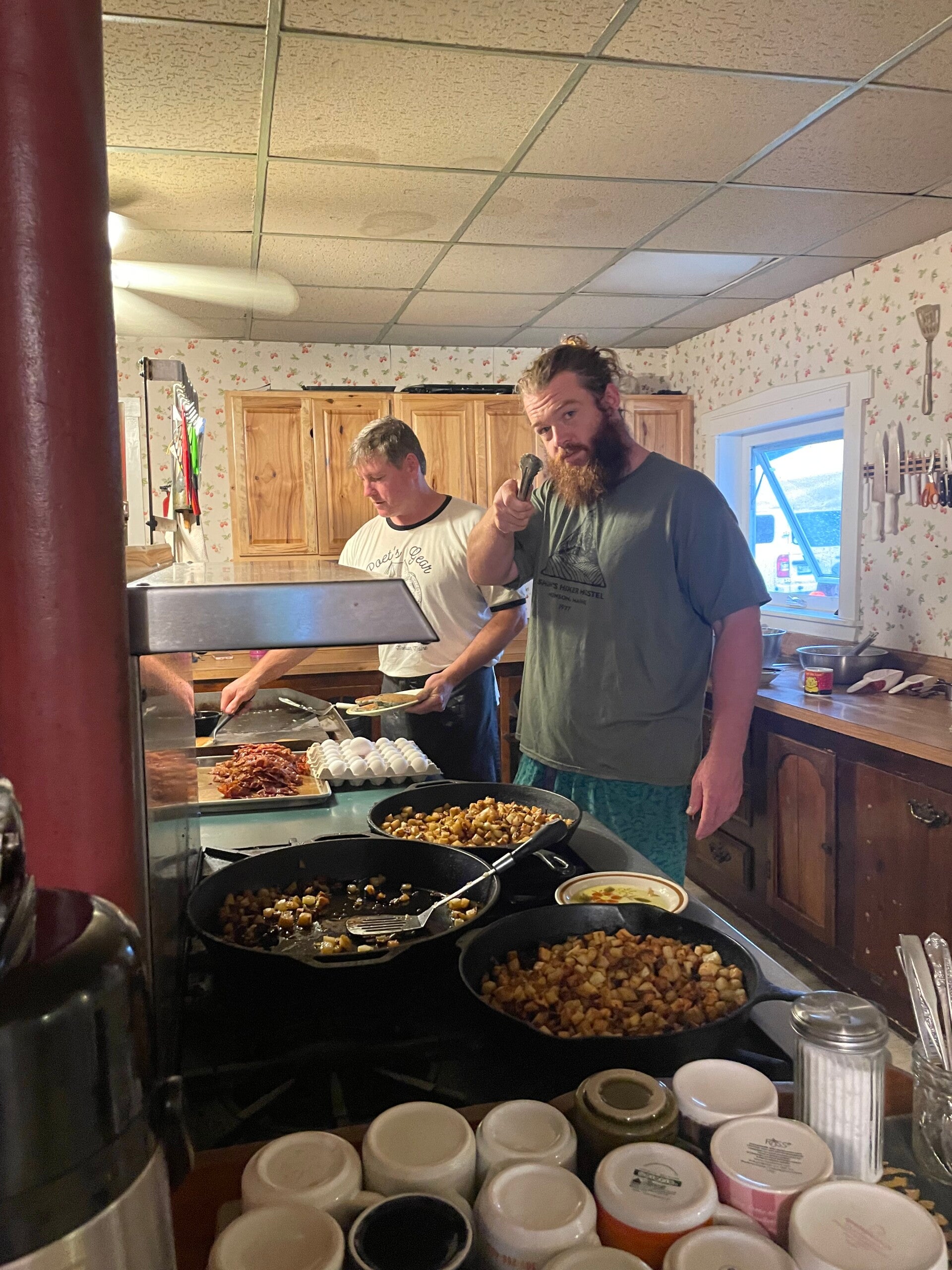 Mein Lieblingsmensch kommt dadurch zweimal in den Genuss, im Hostel zu frühstücken. Es gibt Bratkartoffeln mit Spiegelei und Blaubeerpfannkuchen mit Butter und Ahornsirup.