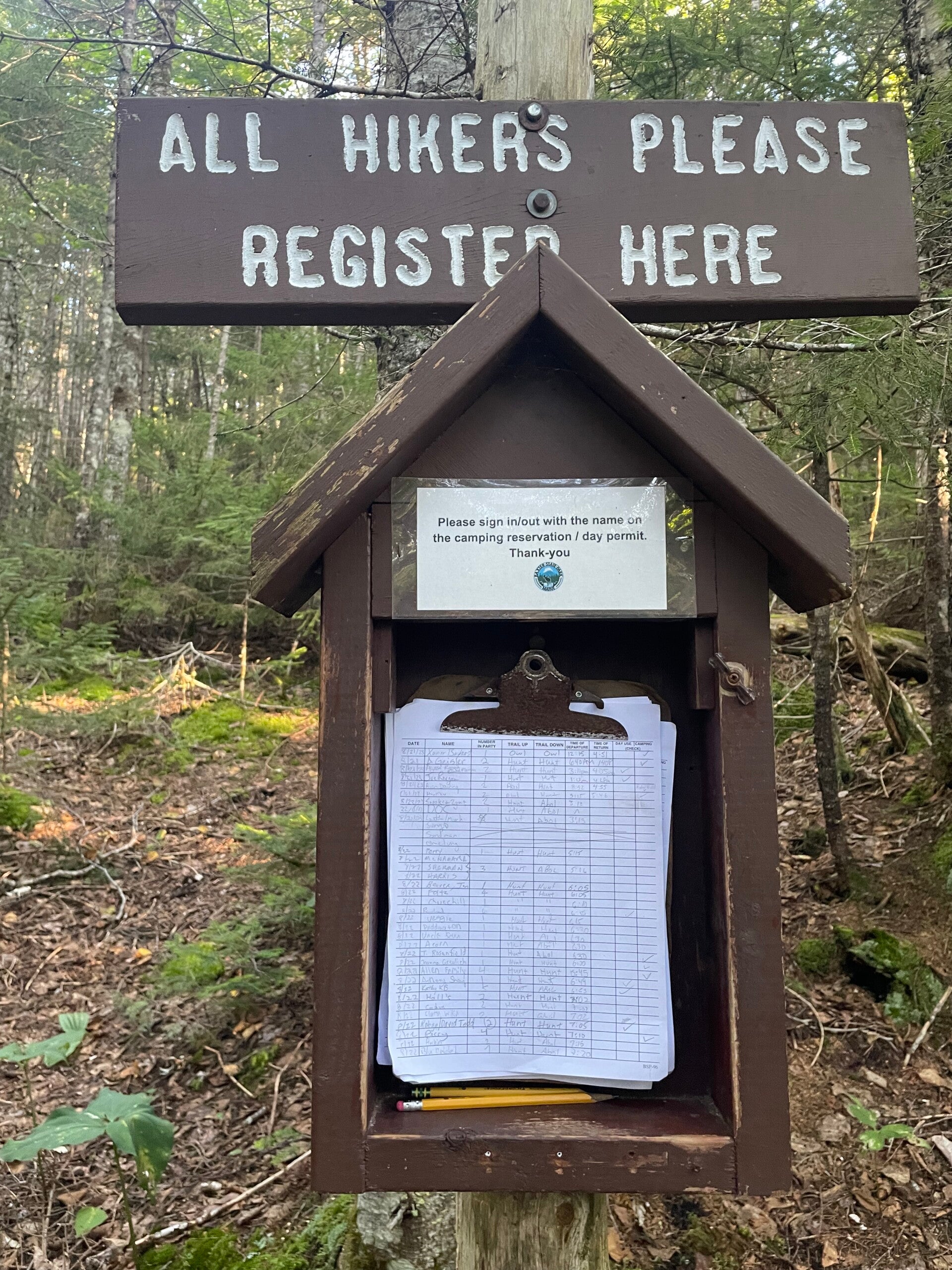 Früh morgens um vier verlässt mein Lieblingsmensch mich und wird zum Baxter State Park gefahren. Dort angekommen macht sie sich nach der Registrierung beim Parkranger auf den Weg, den Berg zu erklimmen