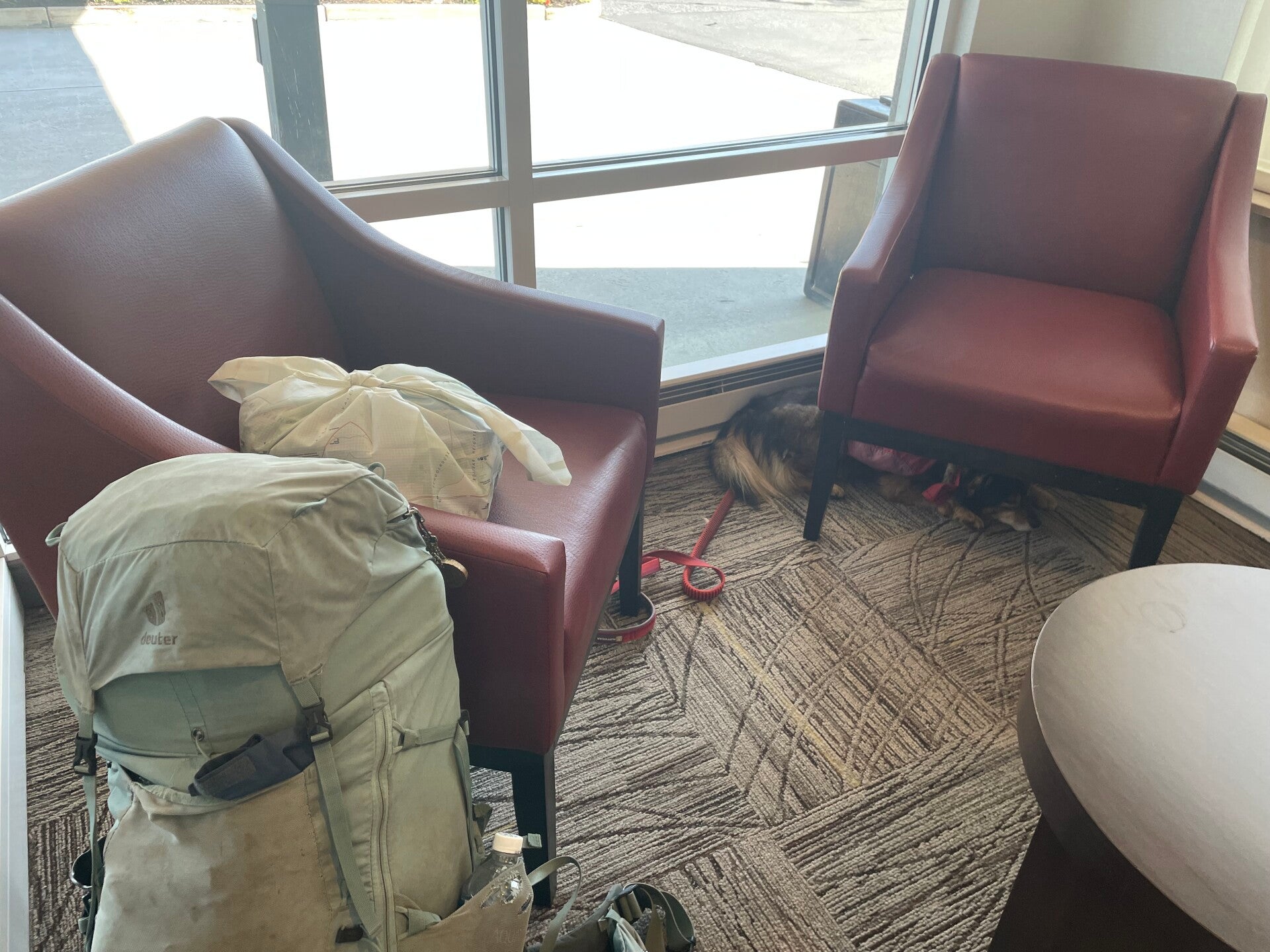 Da es zu regnen beginnt und selbst den Tag darauf nicht aufhören will, bleiben wir dort eine Nacht länger als geplant. Bin ich froh, dass ich nicht im Regen loslaufen muss. Da bleibe ich doch viel lieber mit trockenem Fell im Zelt liegen.